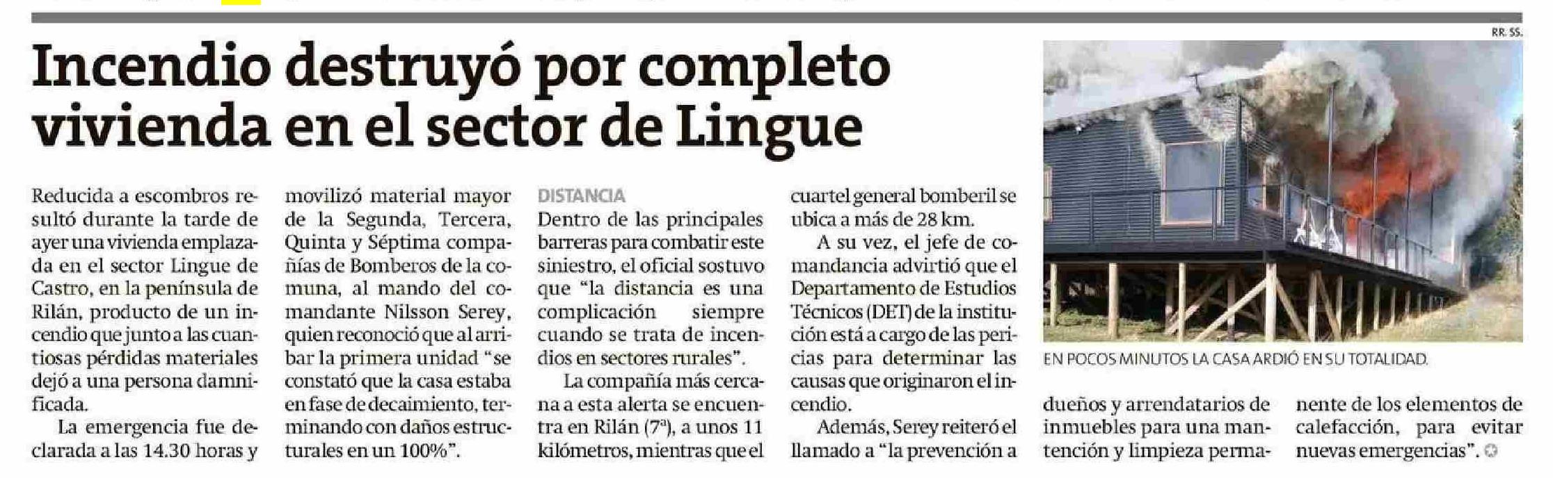 Incendio destruyó por completo vivienda en el sector de Lingue