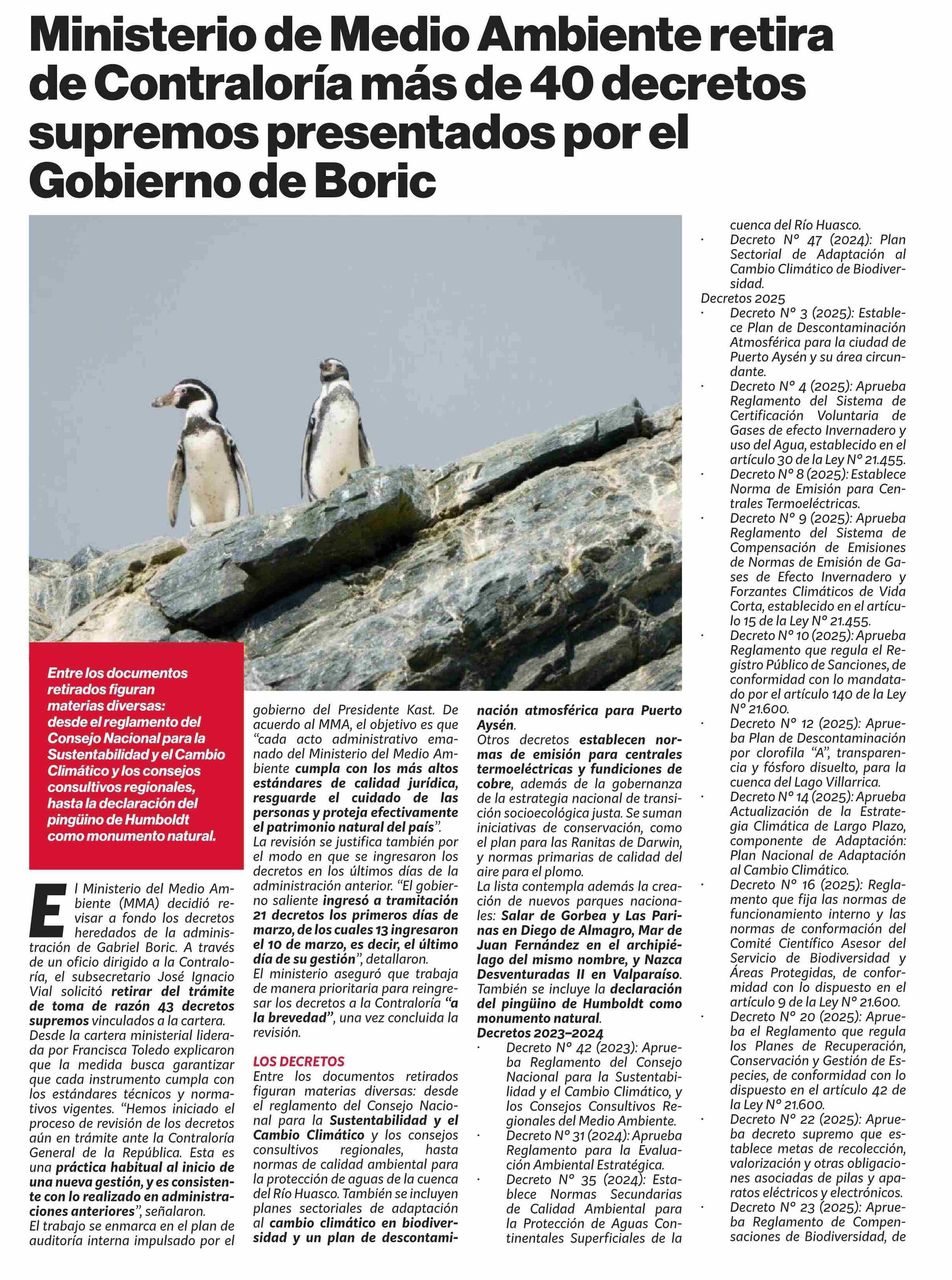 Ministerio de Medio Ambiente retira de Contraloría más de 40 decretos supremos presentados por el Gobierno de Boric