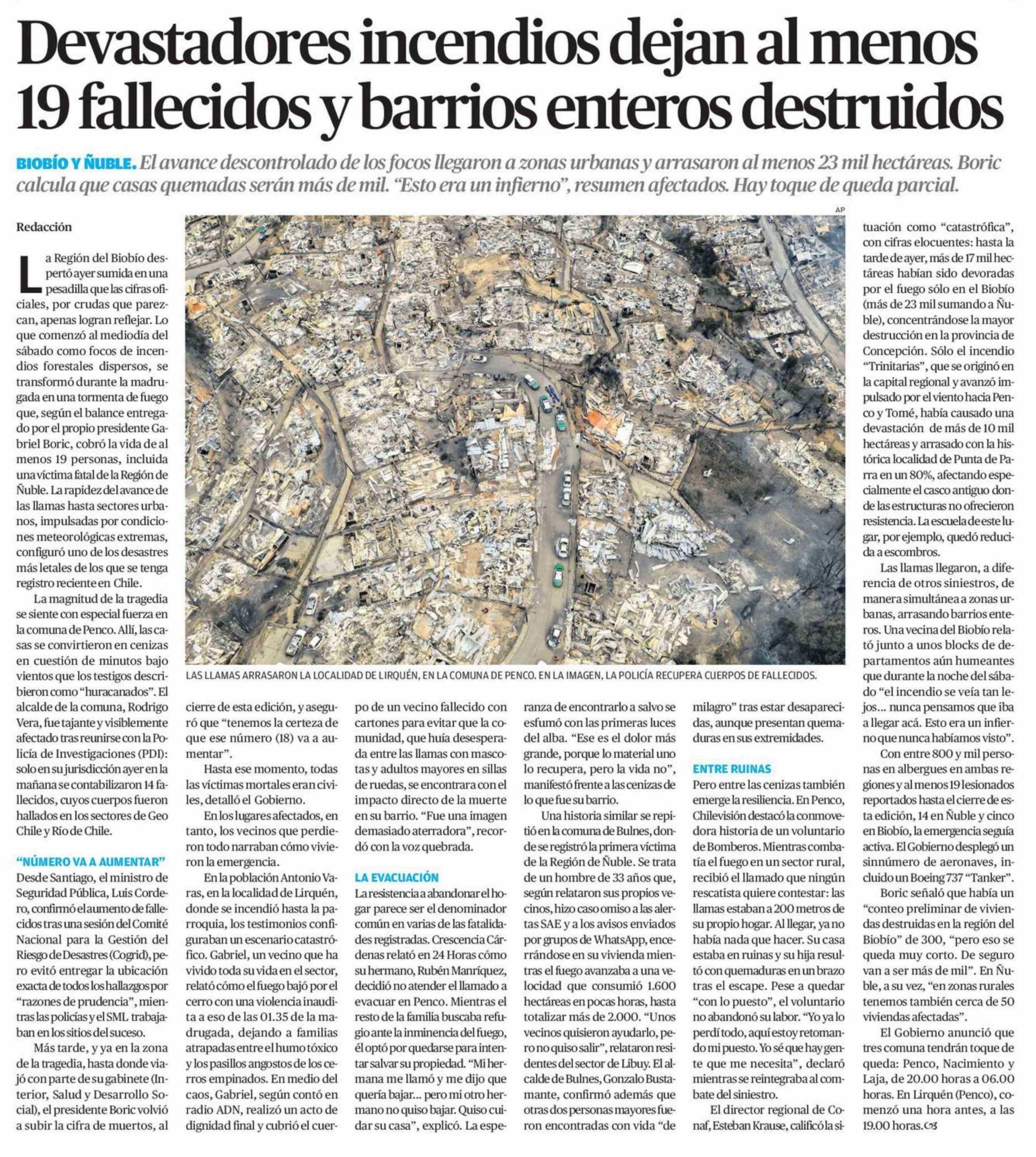 Devastadores incendios dejan al menos 19 fallecidos y barrios enteros destruidos