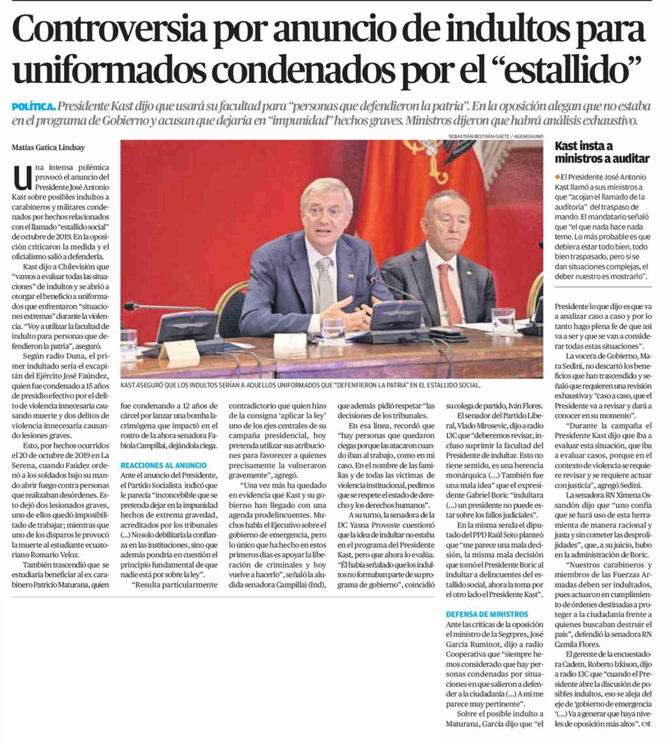 Controversia por anuncio de indultos para uniformados condenados por el "estallido"