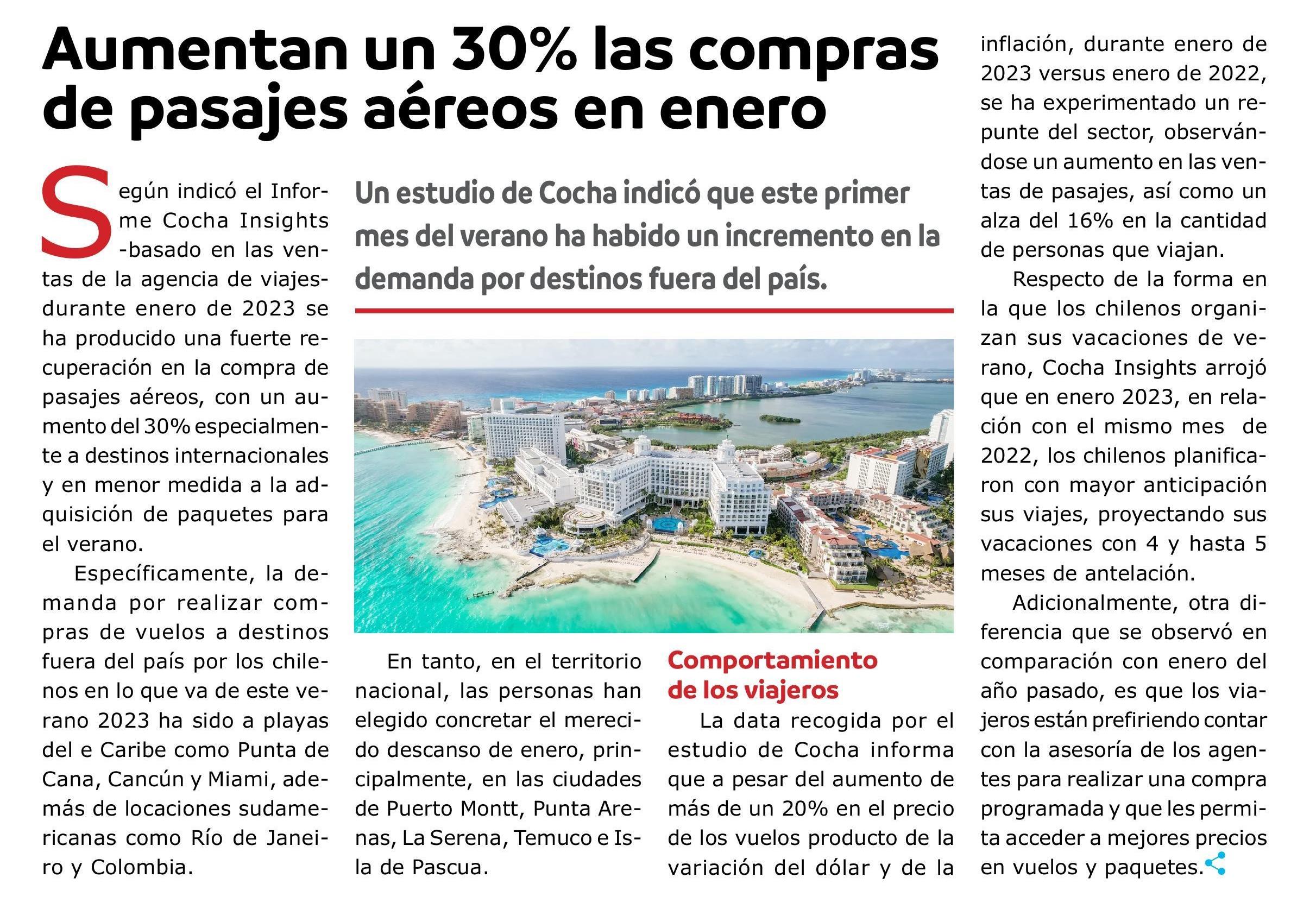 Aumentan un 30% las compras de pasajes aéreos en enero