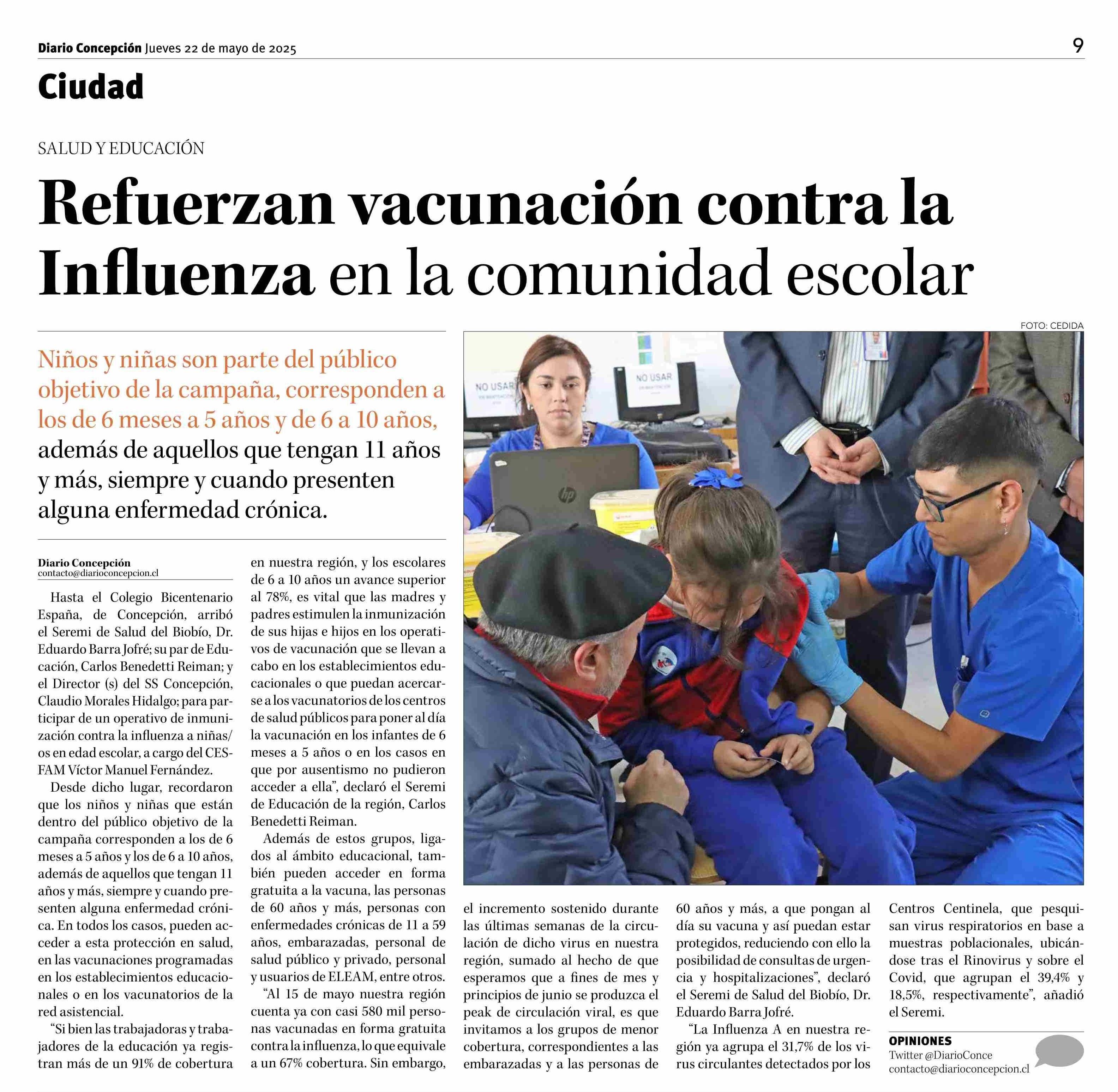Refuerzan vacunación contra la Influenza en la comunidad escolar