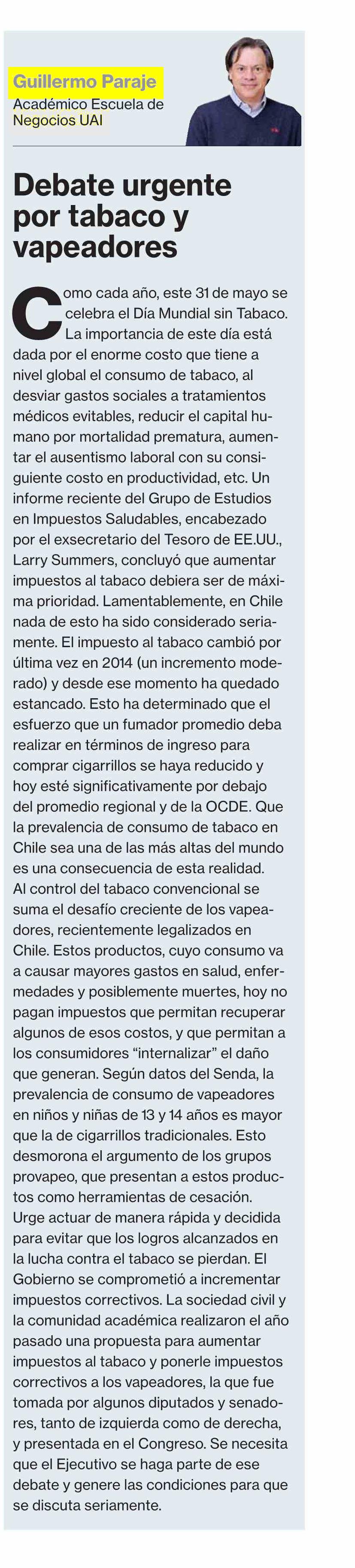 COLUMNAS DE OPINIÓN: Debate urgente por tabaco y vapeadores