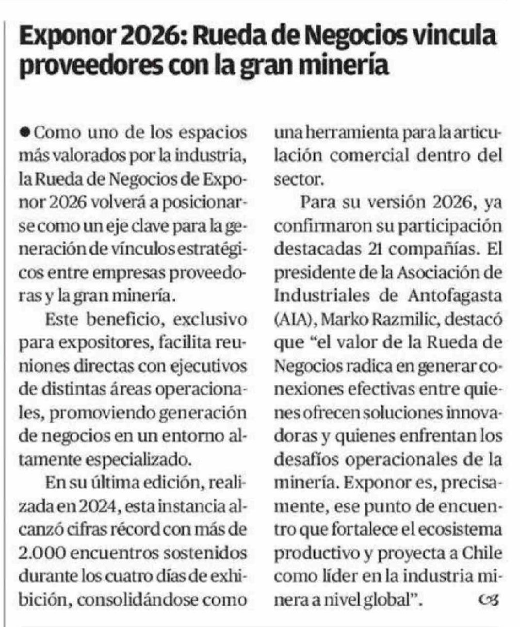 Exponor 2026: Rueda de Negocios vincula proveedores con la gran minería