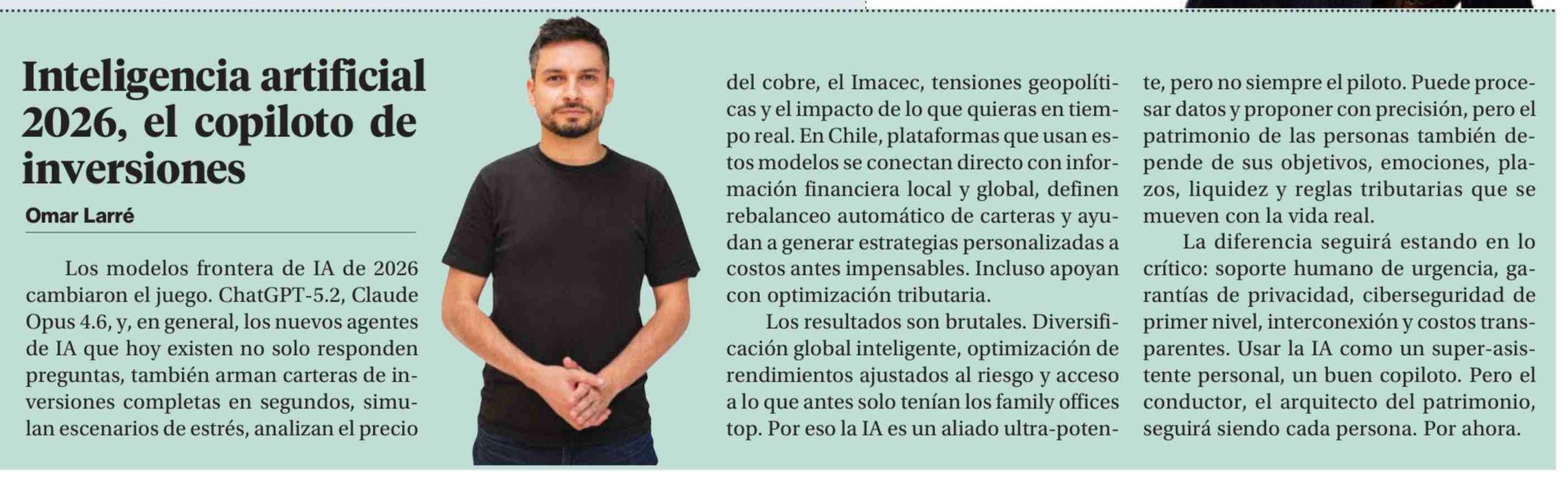 Columnas de Opinión: Inteligencia artificial 2026, el copiloto de inversiones