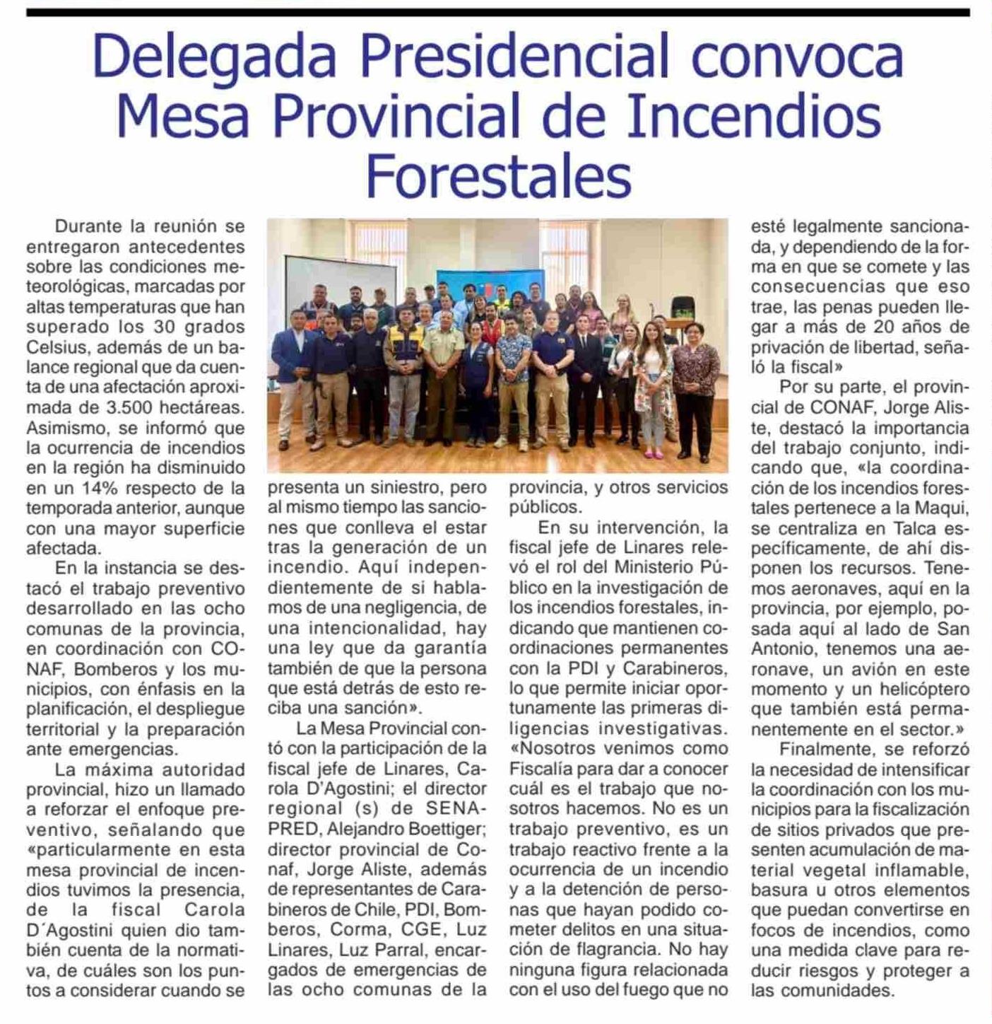 Delegada Presidencial convoca Mesa Provincial de Incendios Forestales