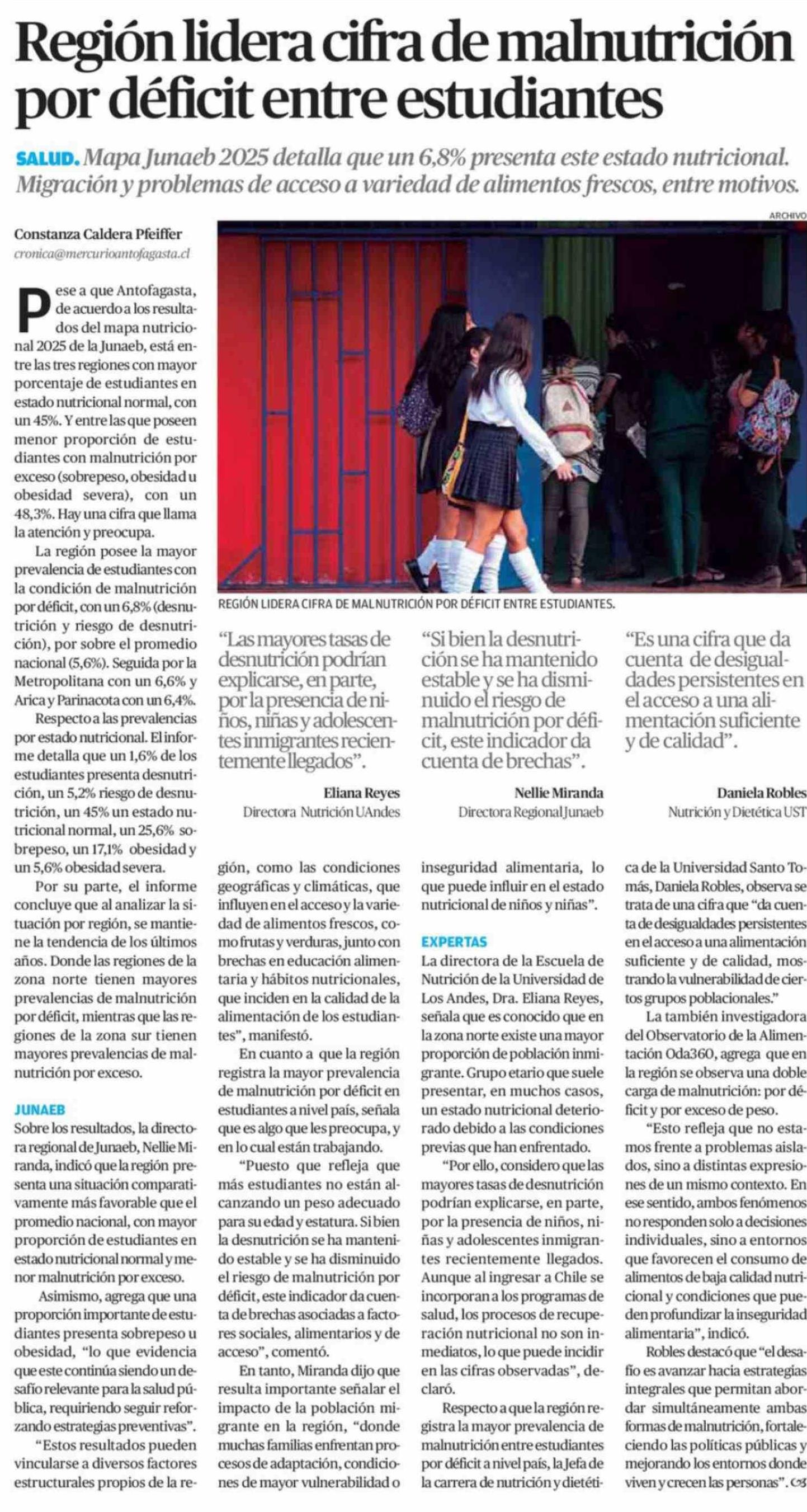 Región lidera cifra de malnutrición por déficit entre estudiantes
