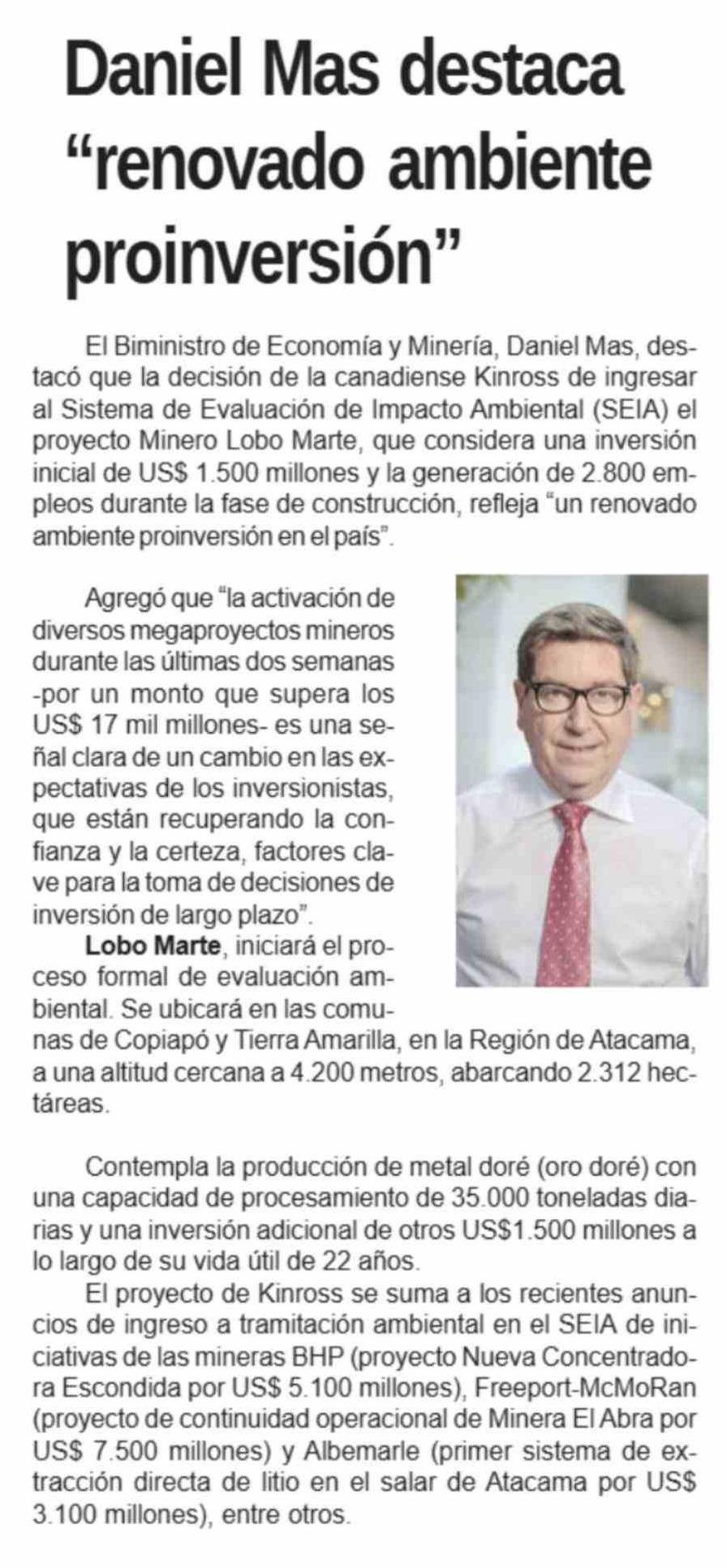 Daniel Mas destaca "renovado ambiente proinversión"