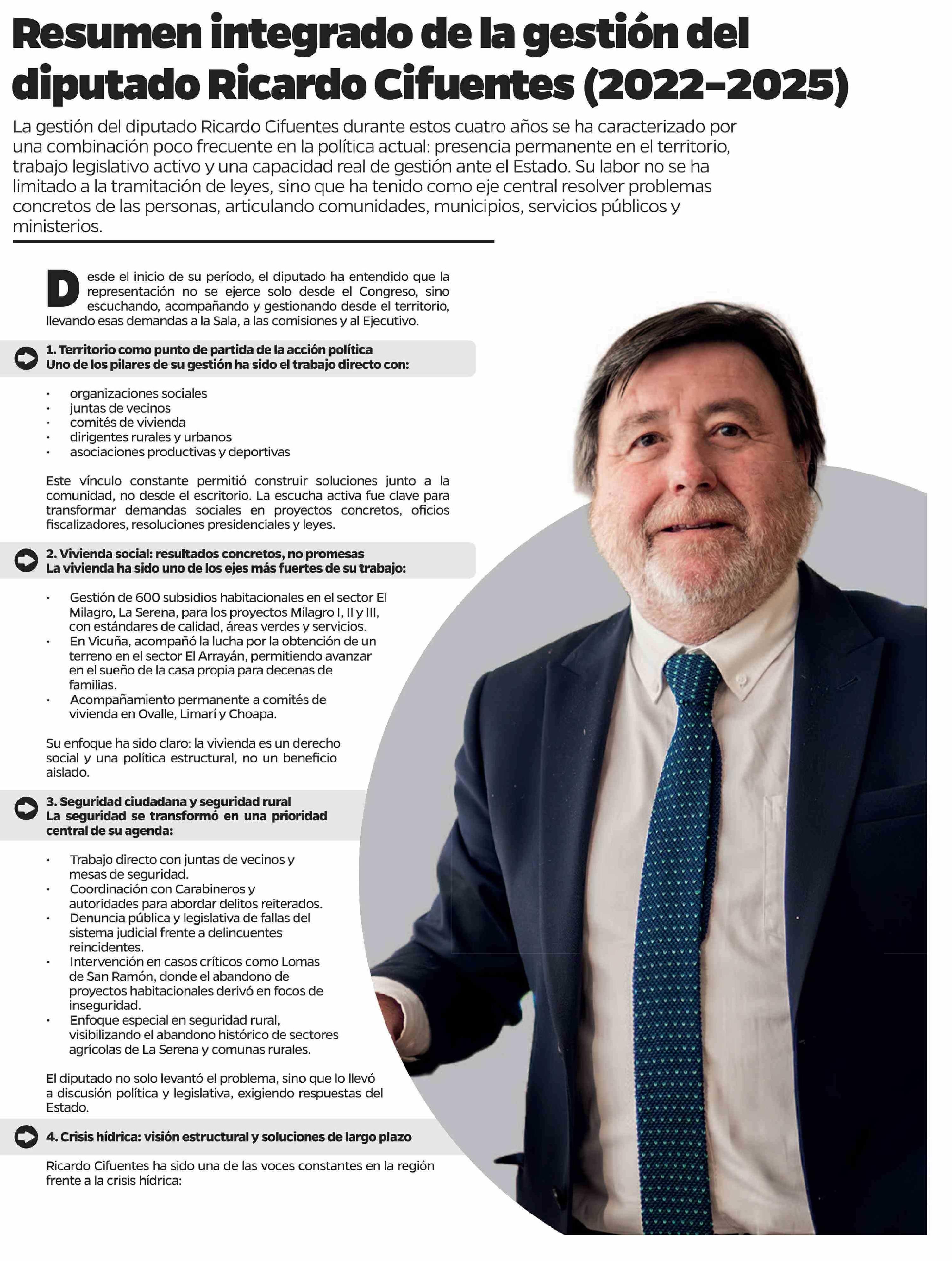 Resumen integrado de la gestión del diputado Ricardo Cifuentes (2022-2025)