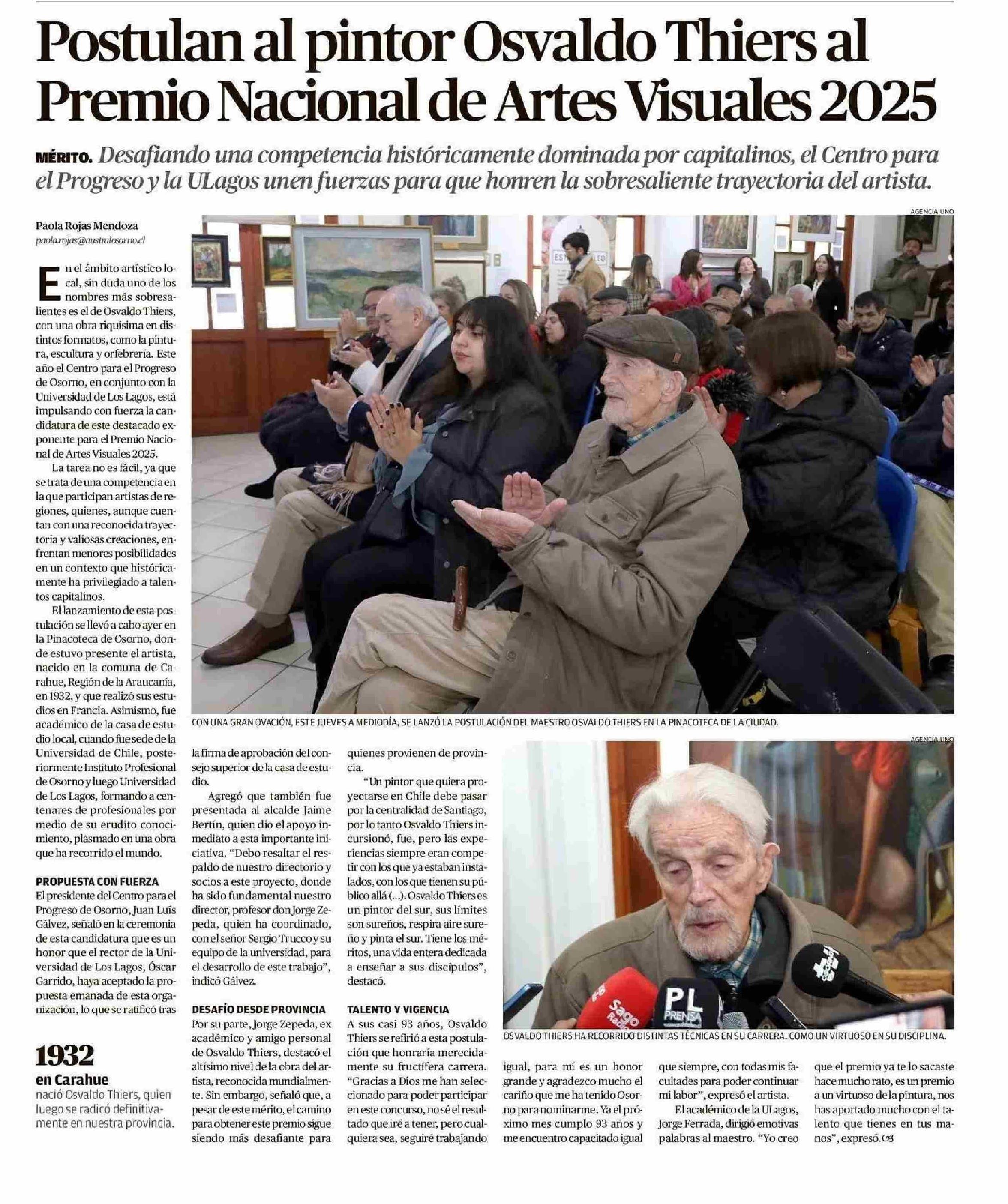 Postulan al pintor Osvaldo Thiers al Premio Nacional de Artes Visuales 2025
