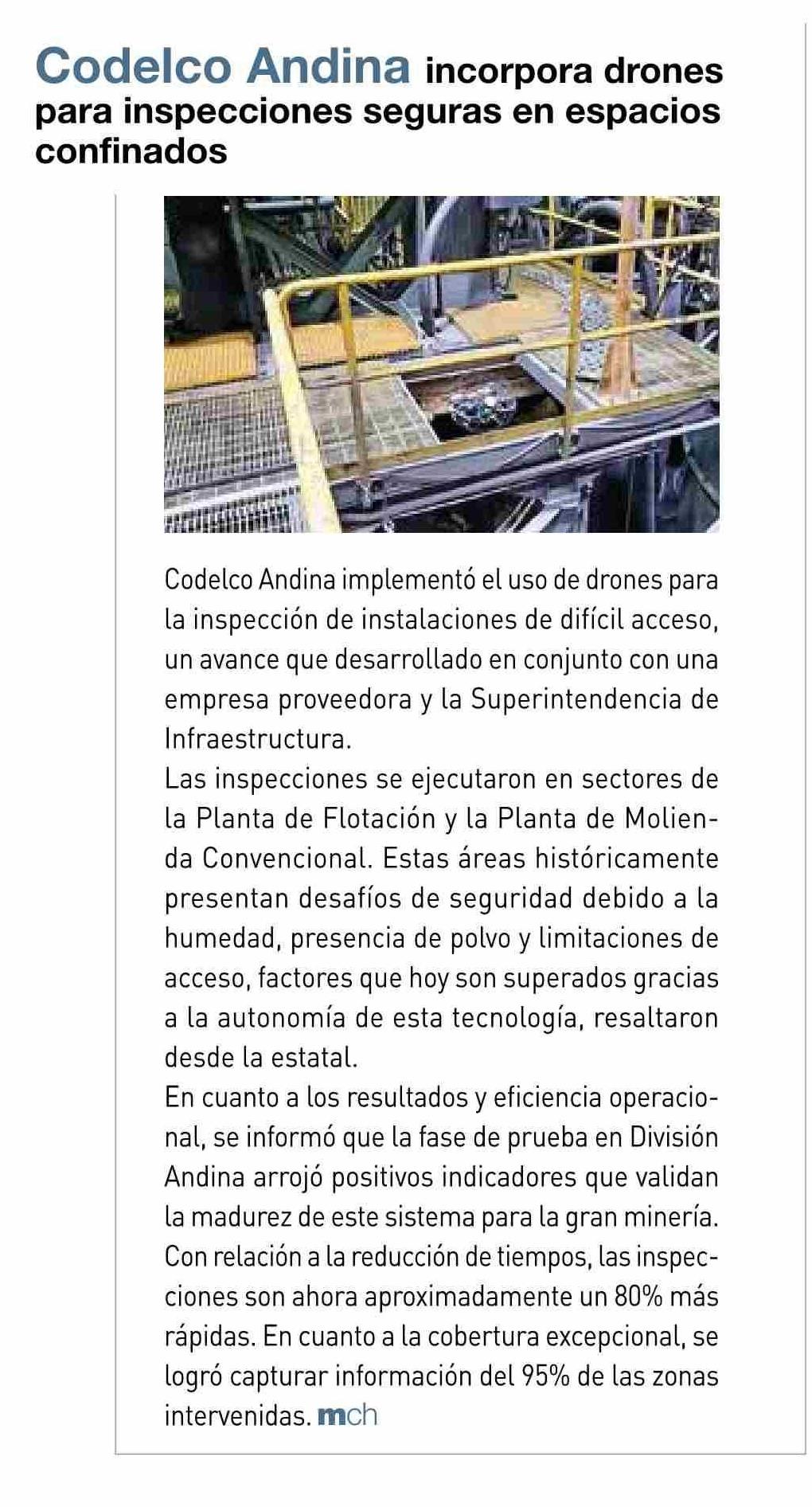 Codelco Andina incorpora drones para inspecciones seguras en espacios confinados