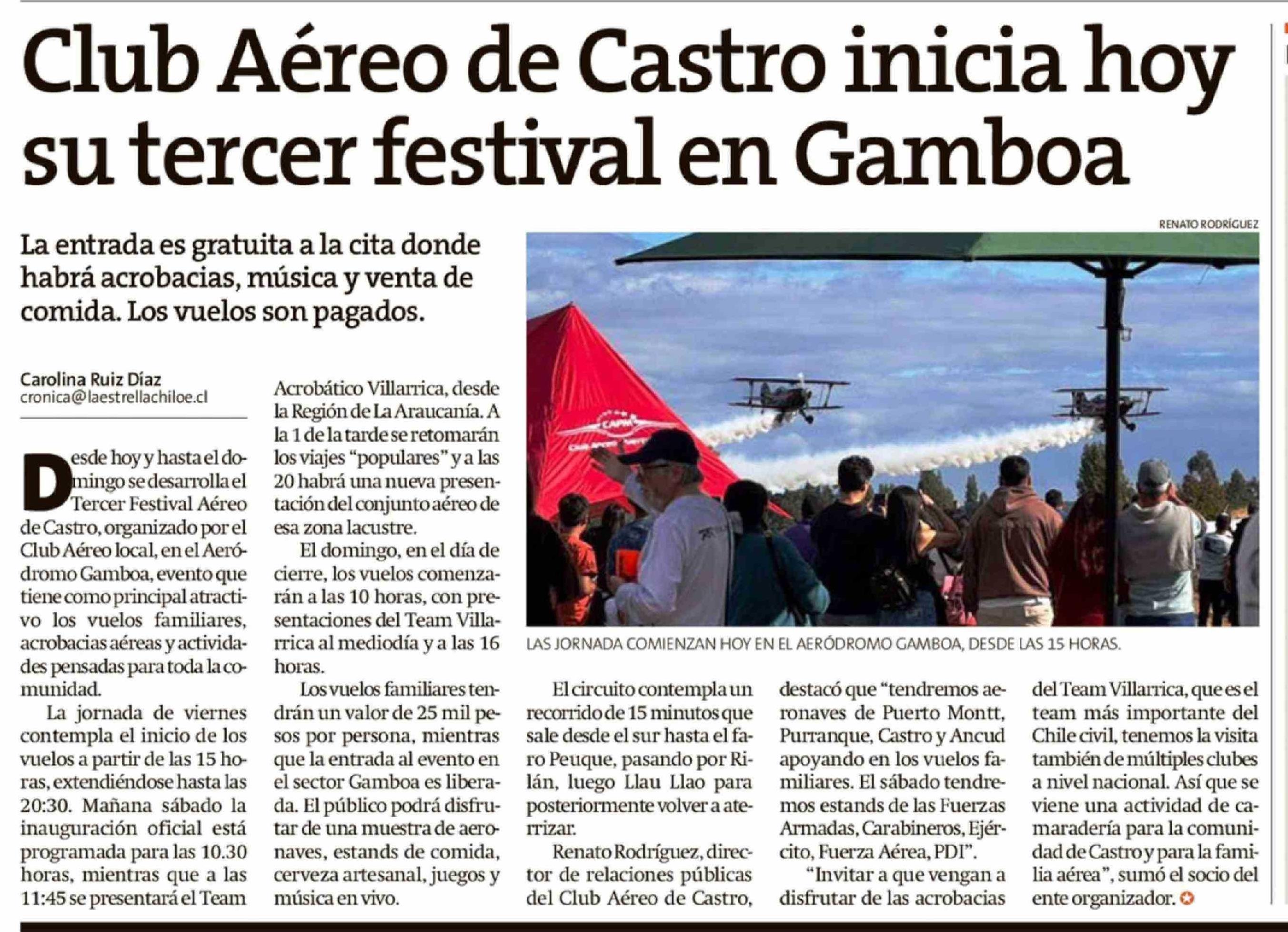 Título: Club Aéreo de Castro inicia hoy su tercer festival en Gamboa