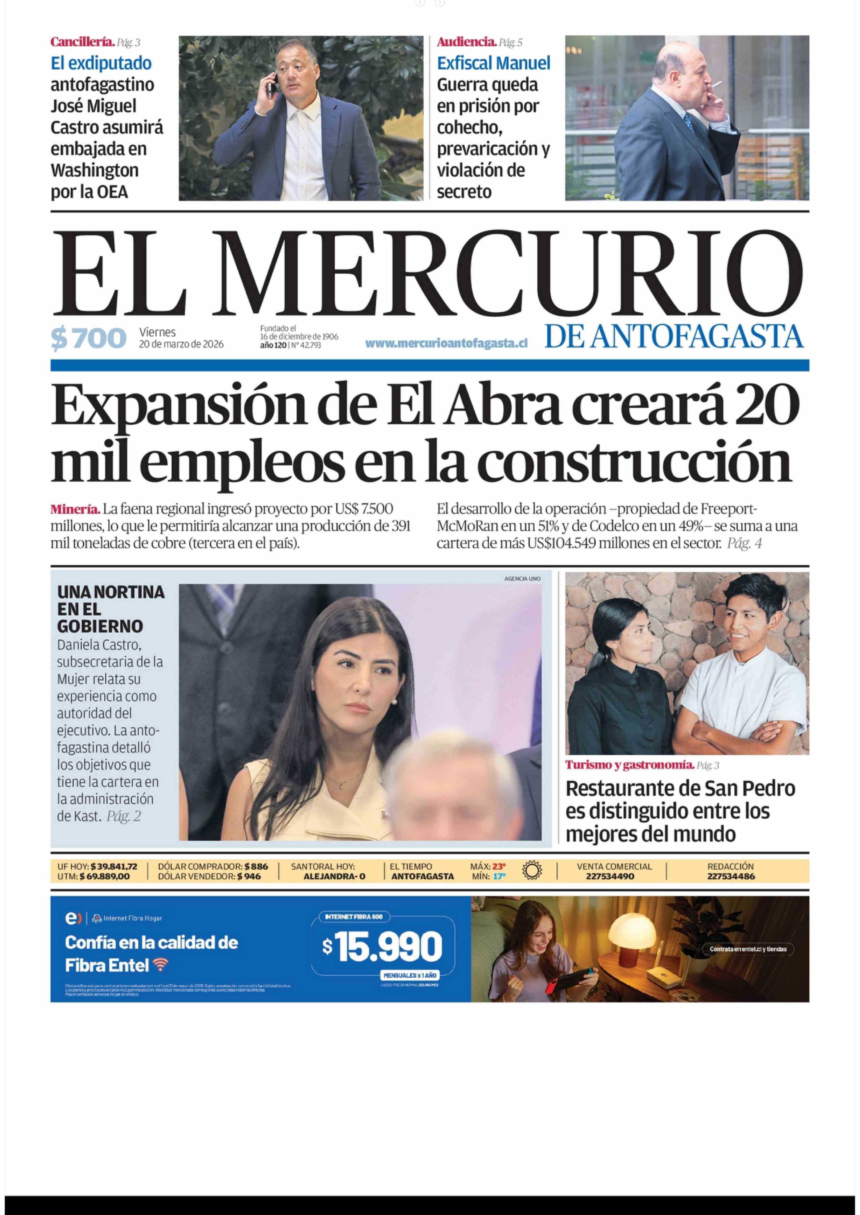 PORTADA EL MERCURIO DE ANTOFAGASTA CHILE