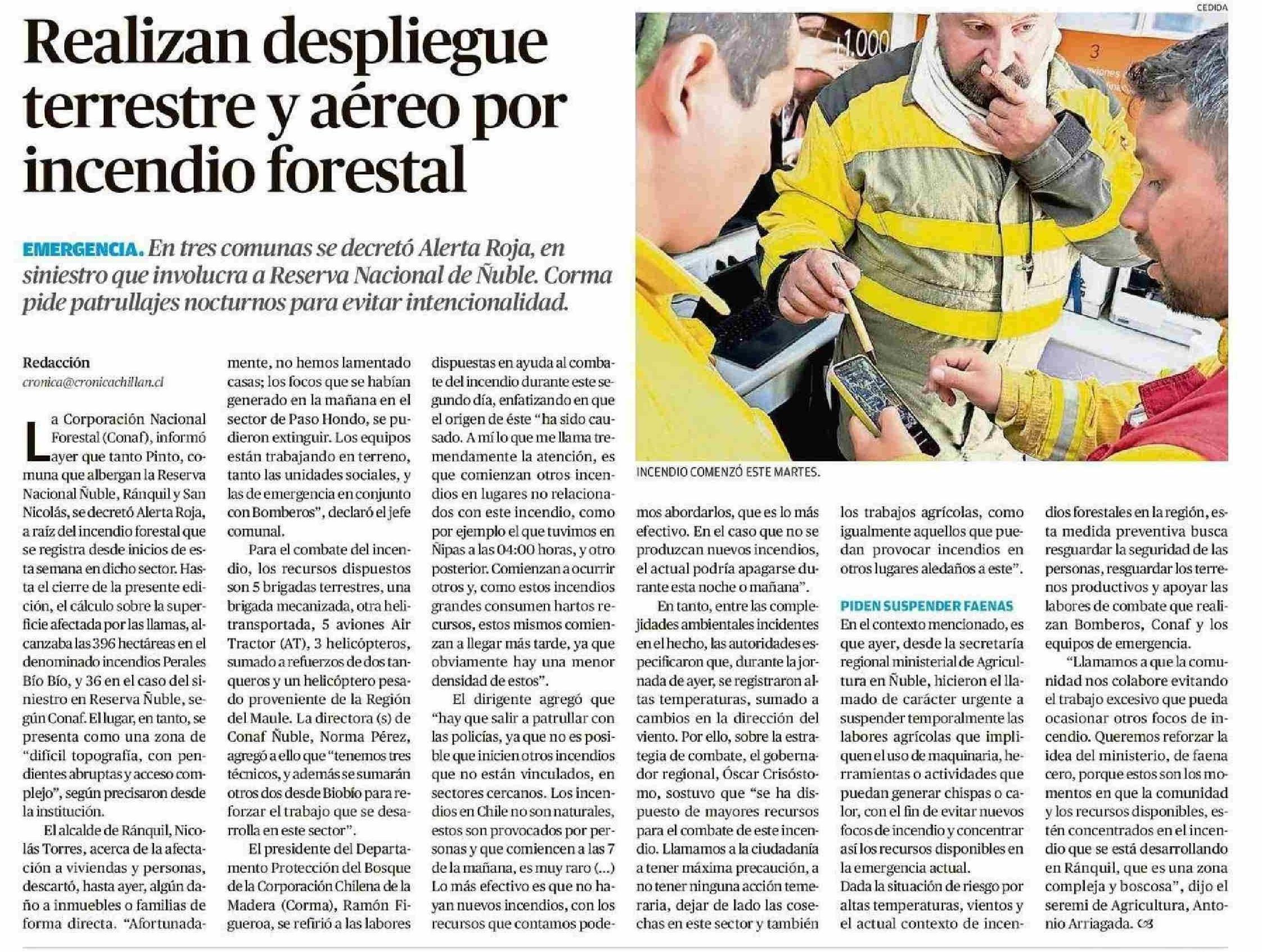 Realizan despliegue terrestre y aéreo por incendio forestal