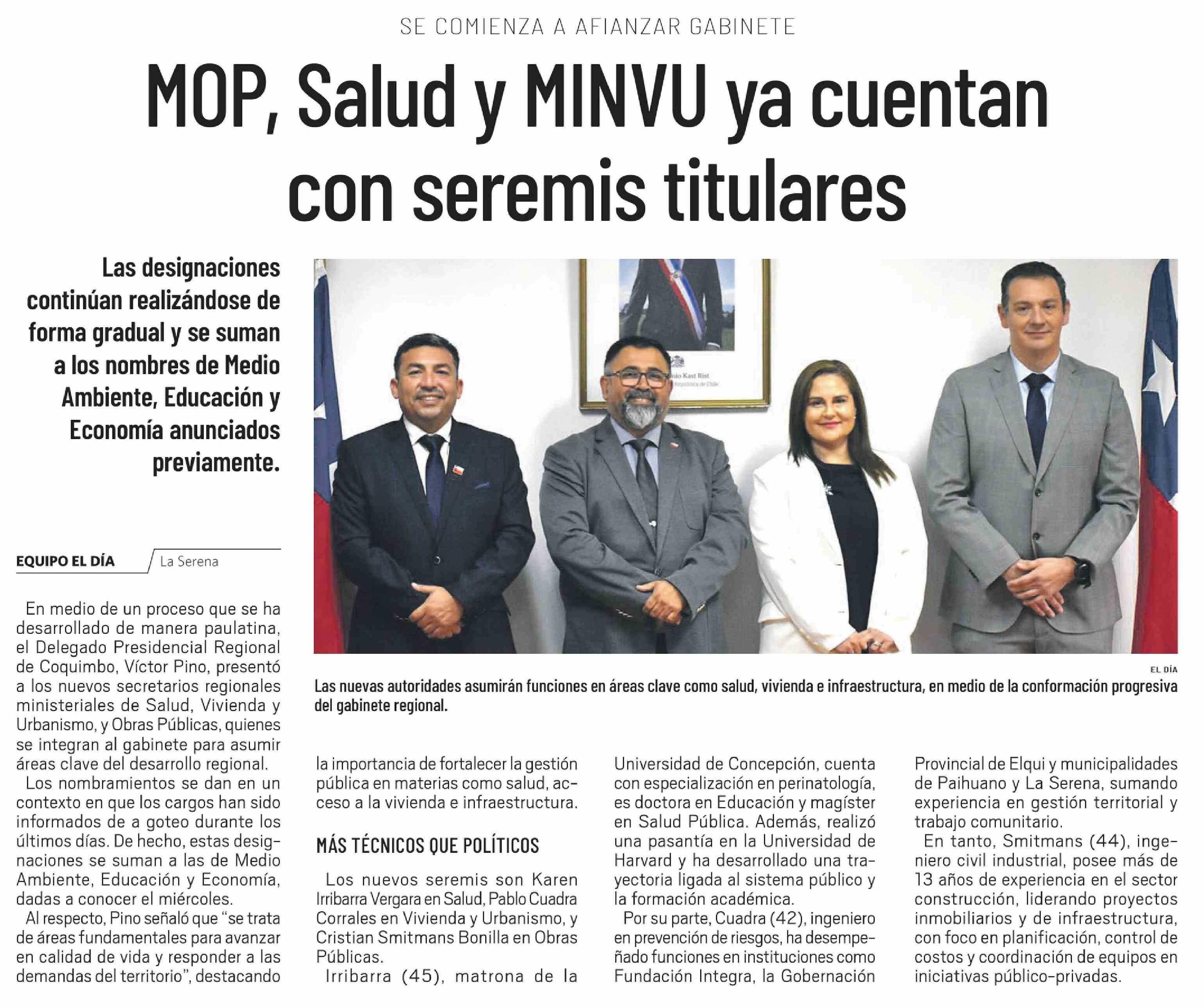 Título: MOP, Salud y MINVU ya cuentan con seremis titulares