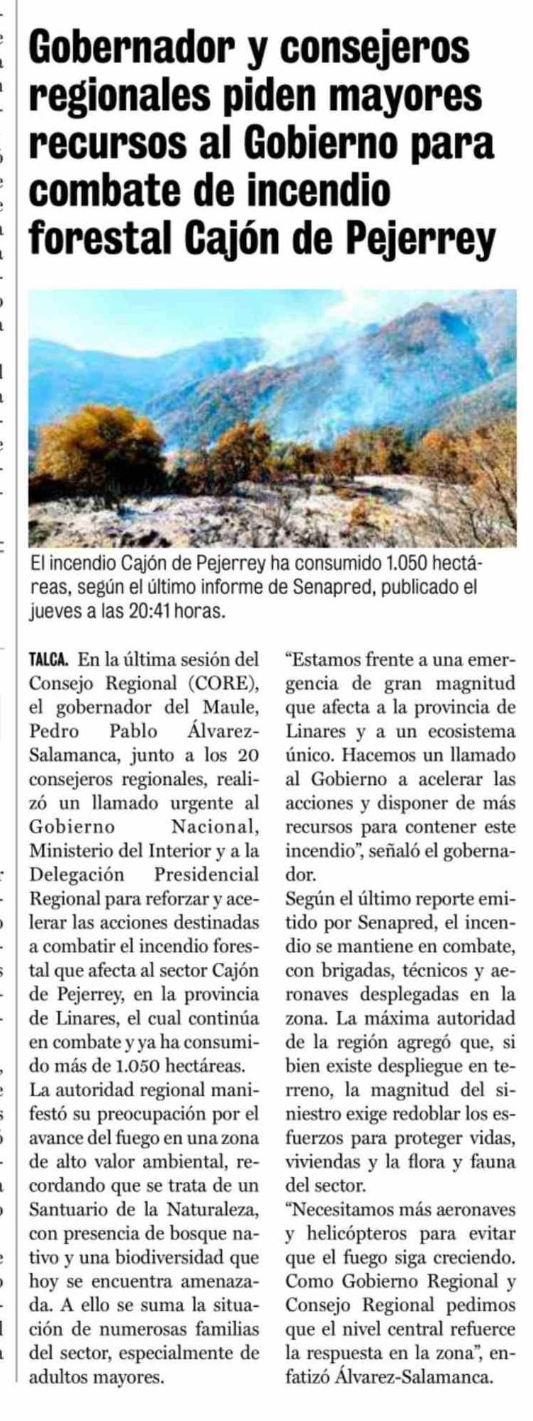 Gobernador y consejeros regionales piden mayores recursos al Gobierno para combate de incendio forestal Cajón de Pejerrey