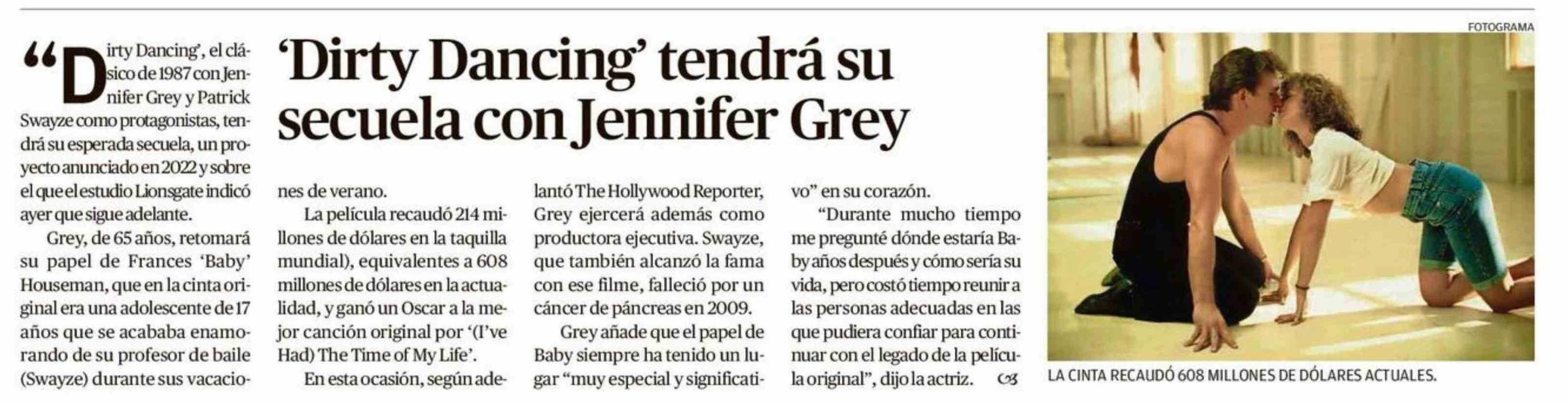 'Dirty Dancing' tendrá su secuela con Jennifer Grey