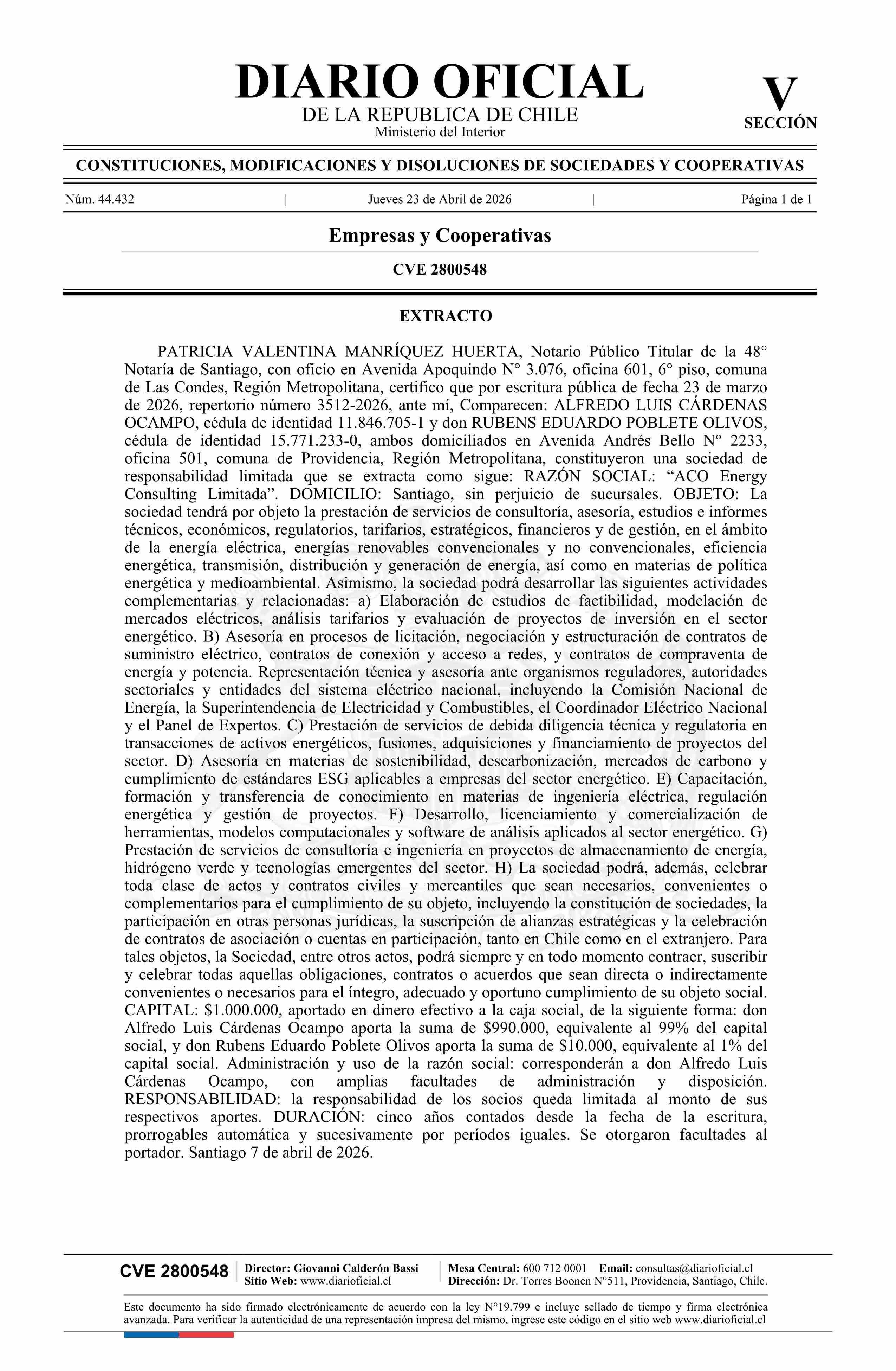 Diario Oficial Edición Electrónica (Diario Oficial de Chile - 5 Empresas Y Cooper)