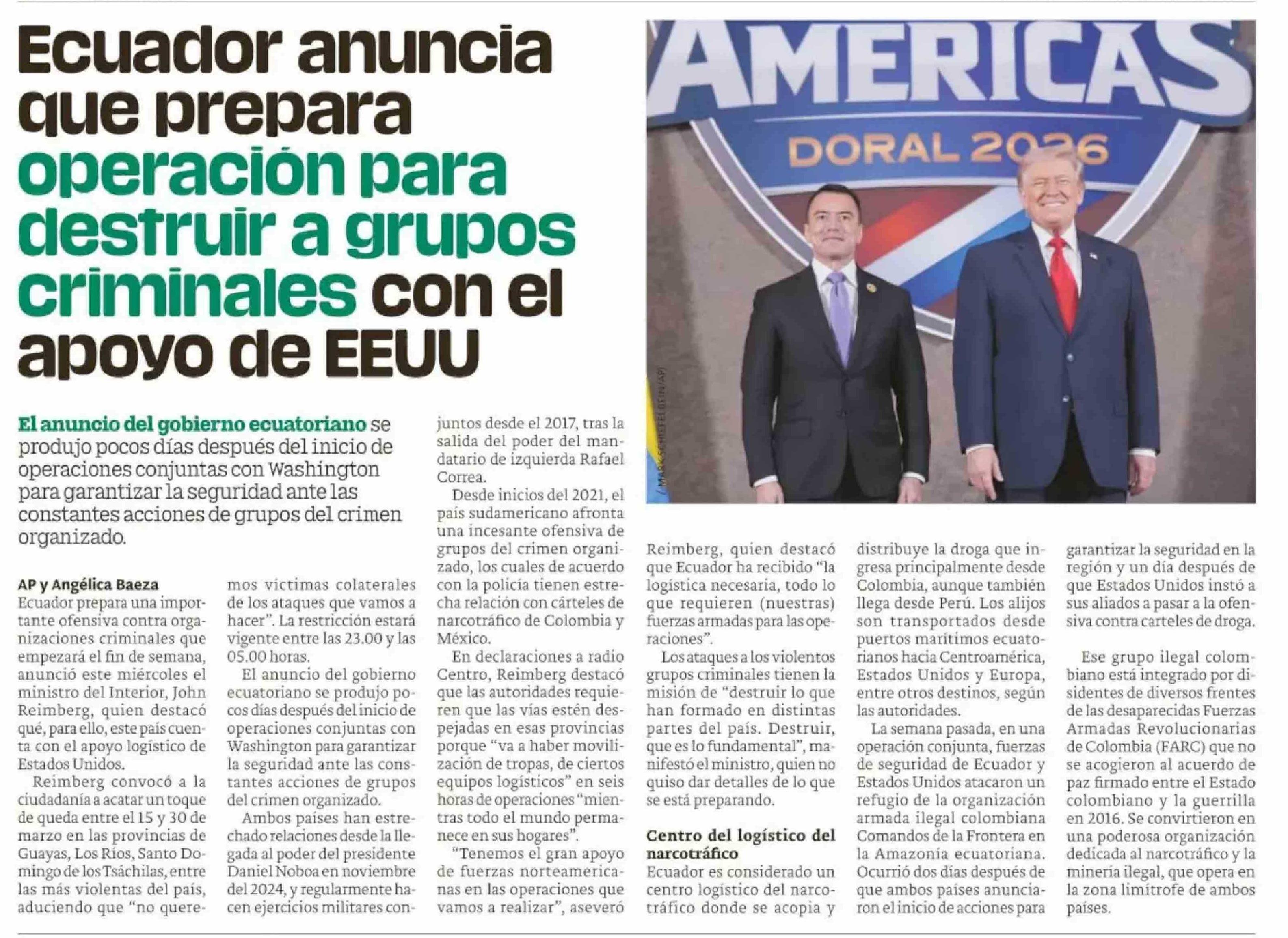 Ecuador anuncia que prepara operación para destruir a grupos criminales con el apoyo de EEUU