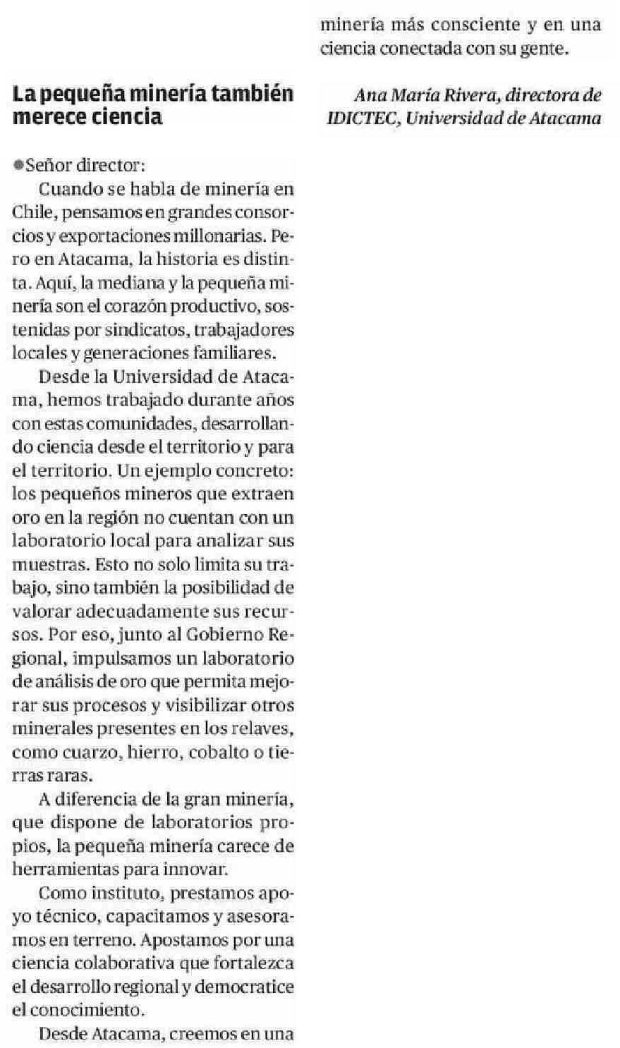 La pequeña minería también merece ciencia