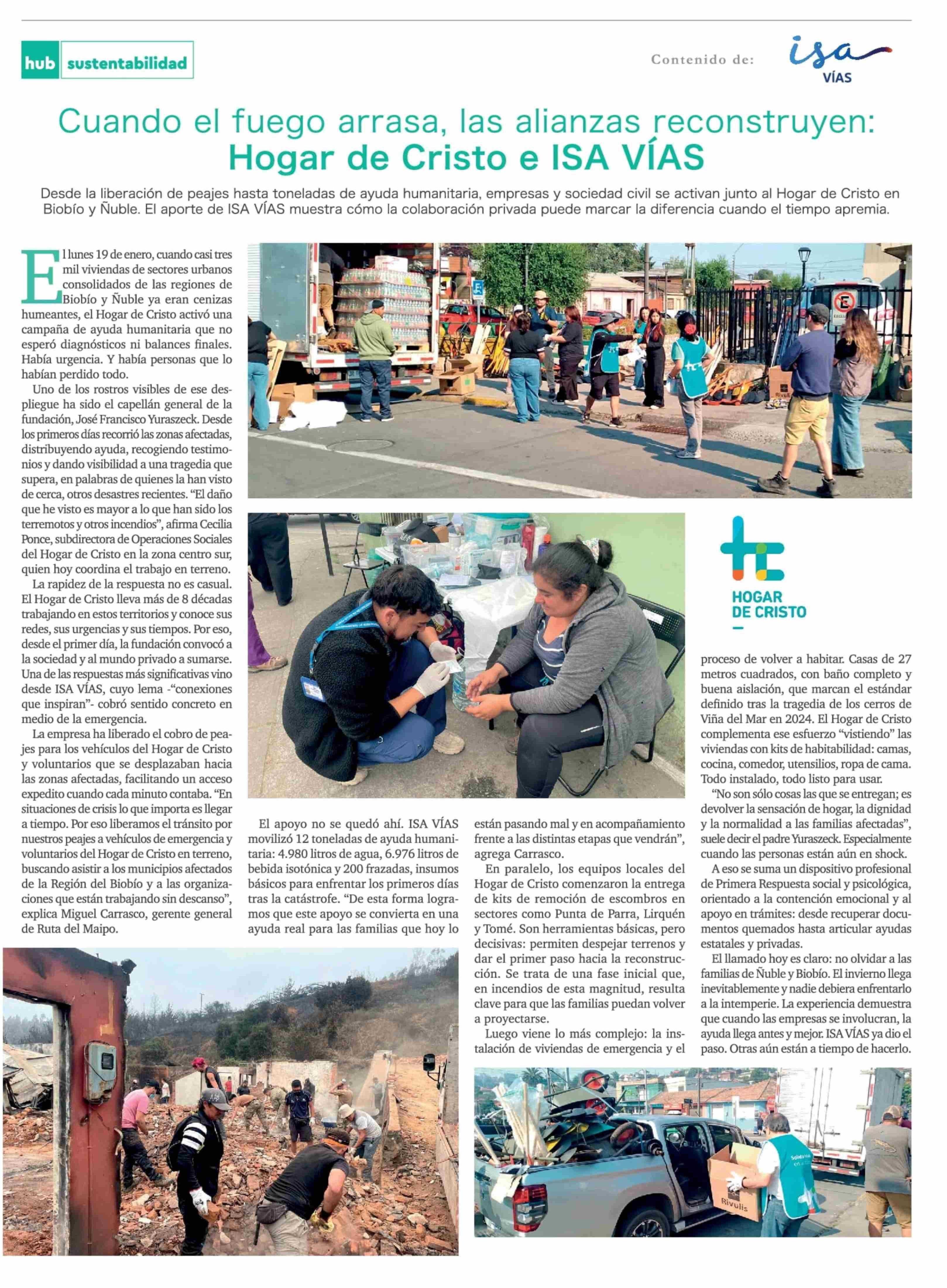 Cuando el fuego arrasa, las alianzas reconstruyen: Hogar de Cristo e ISA VÍAS