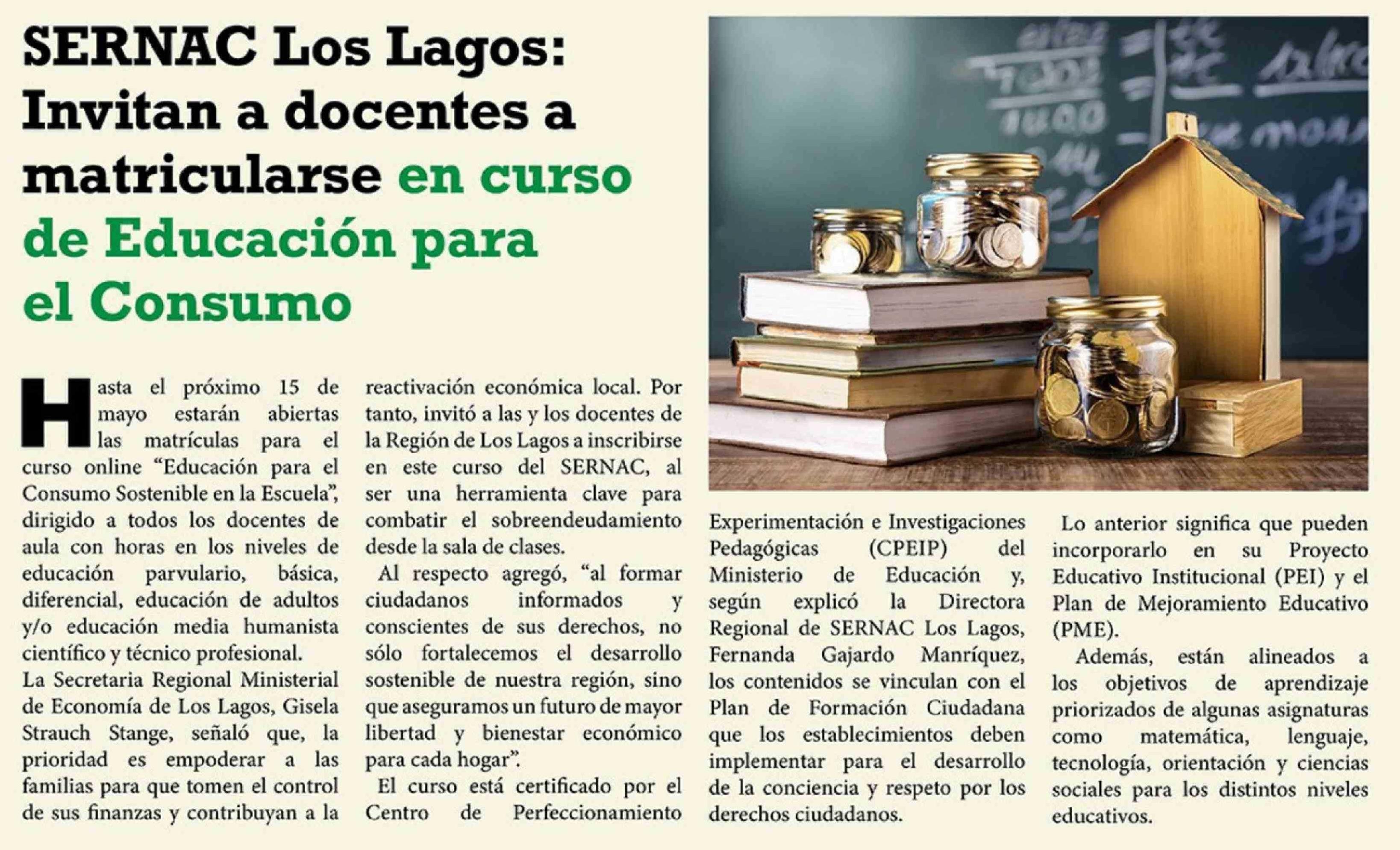 SERNAC Los Lagos: Invitan a docentes a matricularse en curso de Educación para el Consumo