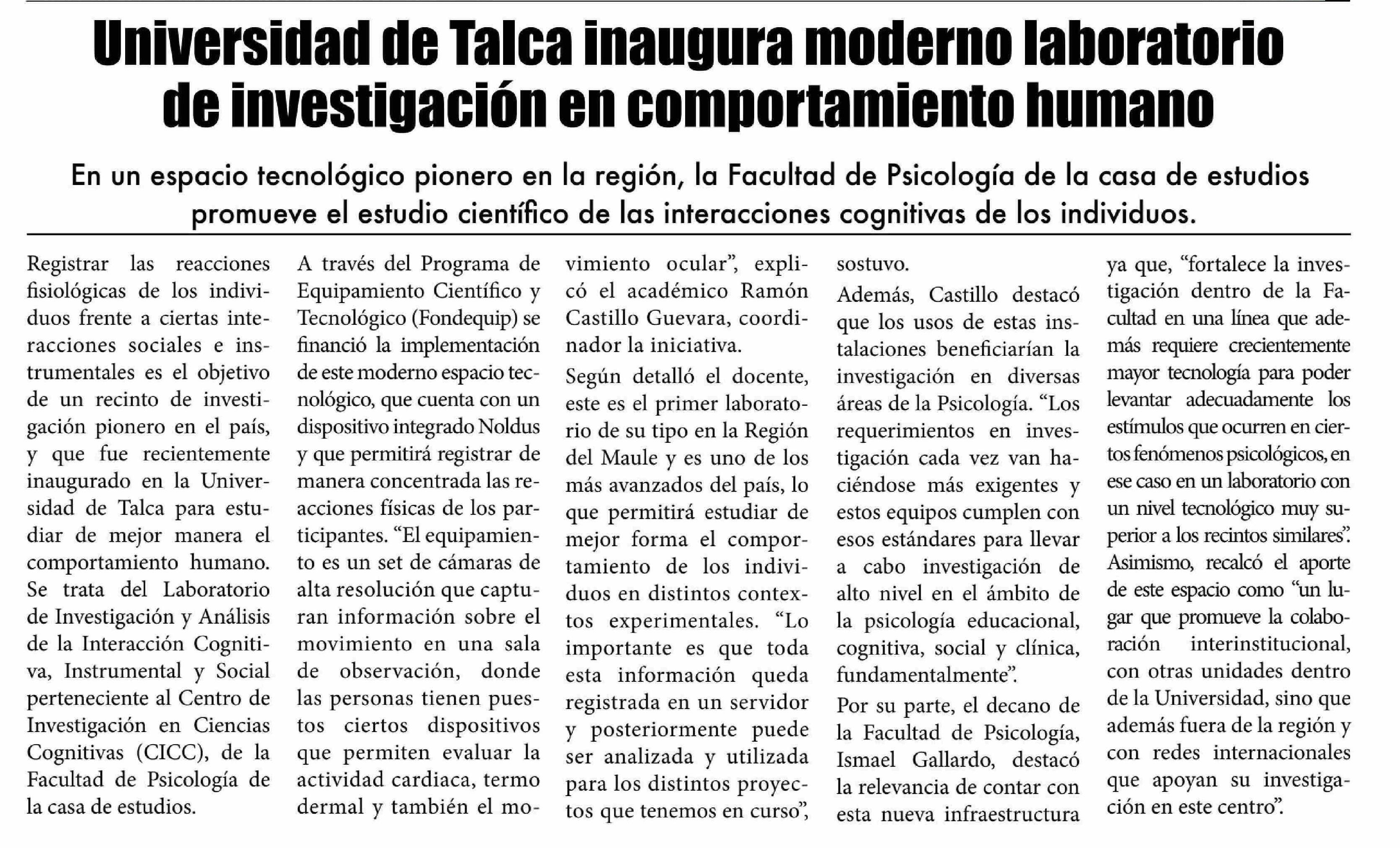 Universidad de Talca inaugura moderno laboratorio de investigación en comportamiento humano