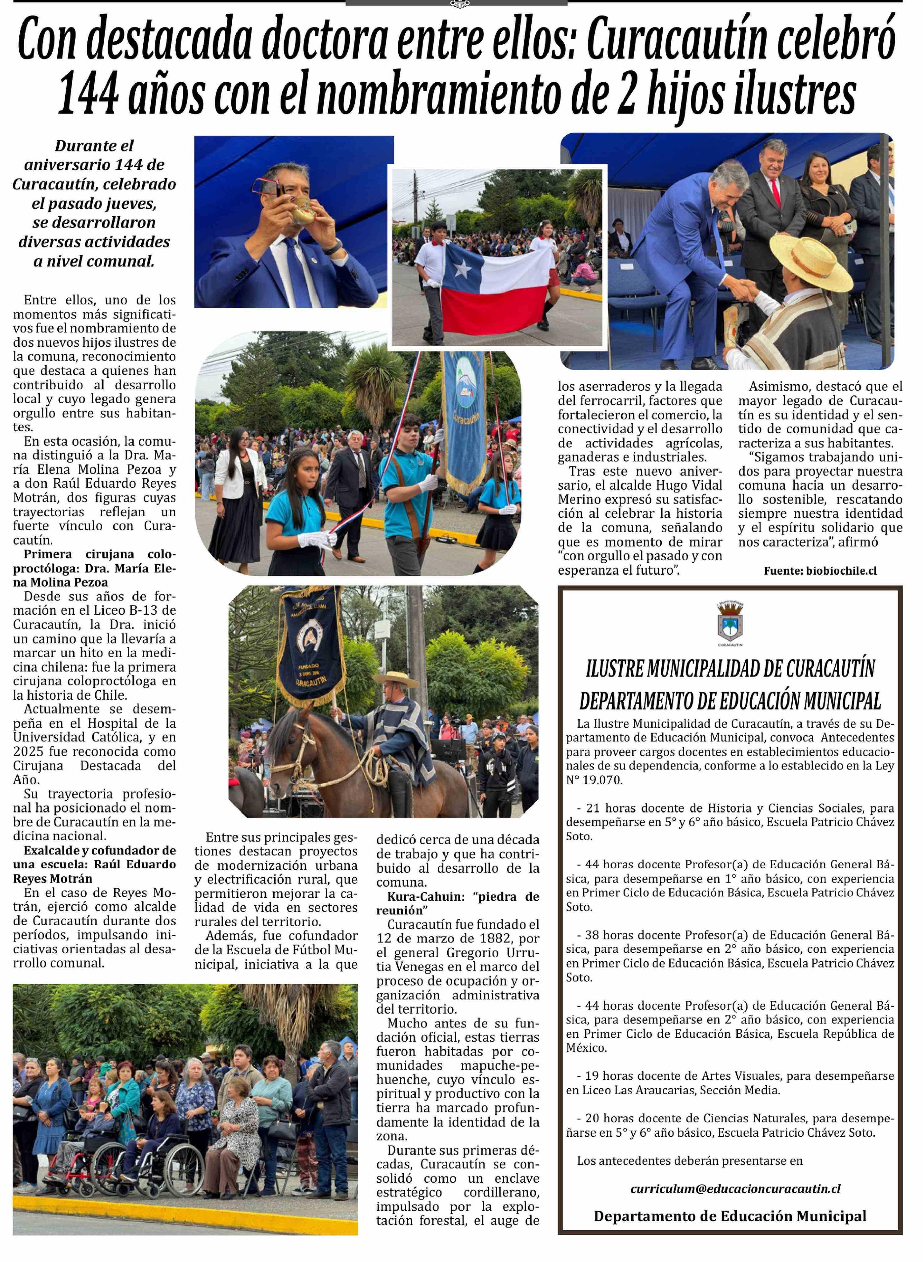 Con destacada doctora entre ellos: Curacautín celebró 144 años con el nombramiento de 2 hijos ilustres