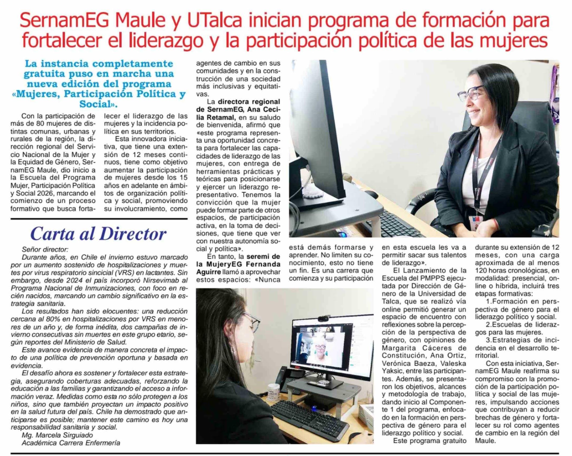 SernamEG Maule y UTalca inician programa de formación para fortalecer el liderazgo y la participación política de las mujeres