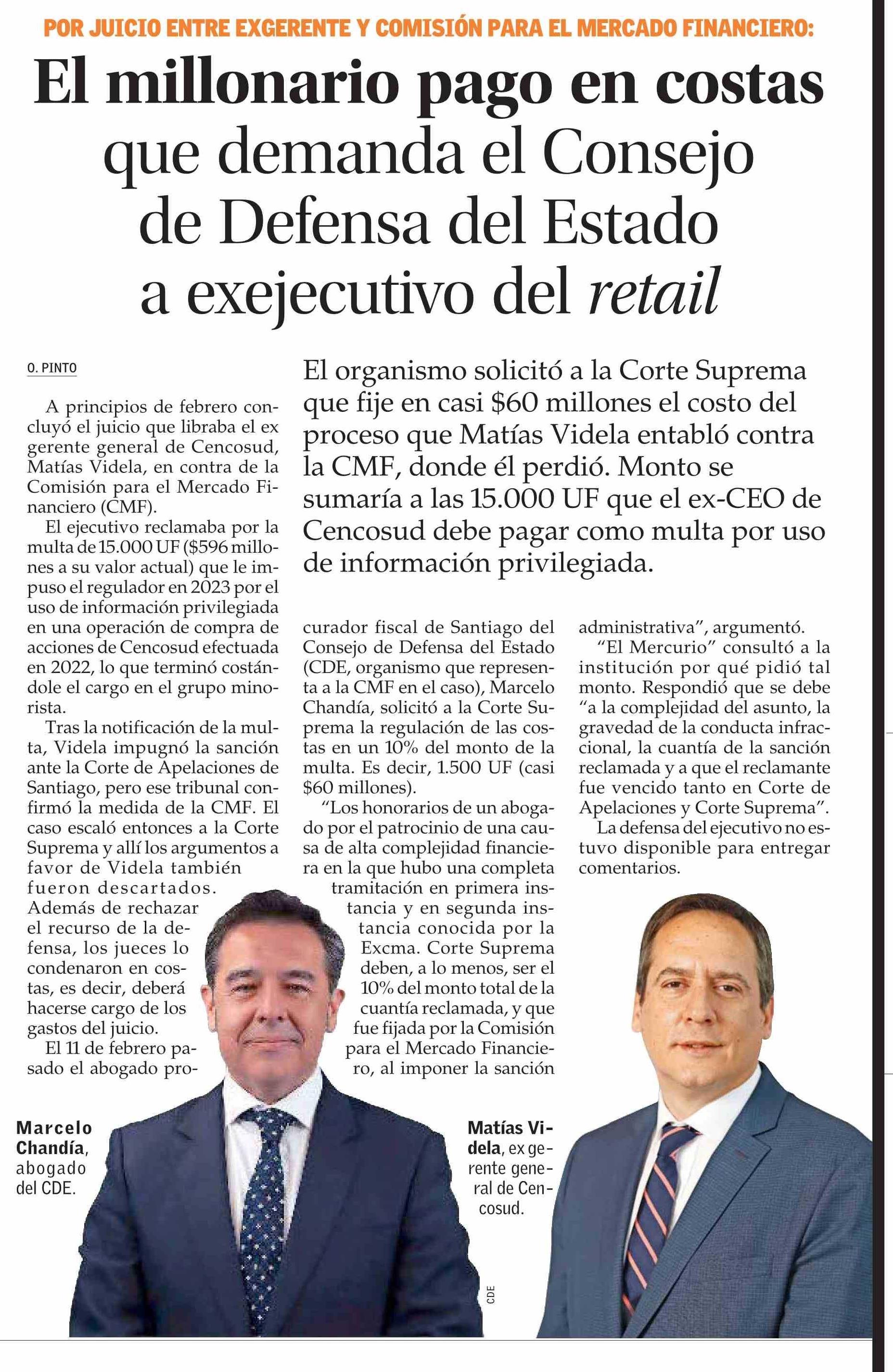 El millonario pago en costas que demanda el Consejo de Defensa del Estado a exejecutivo del retail