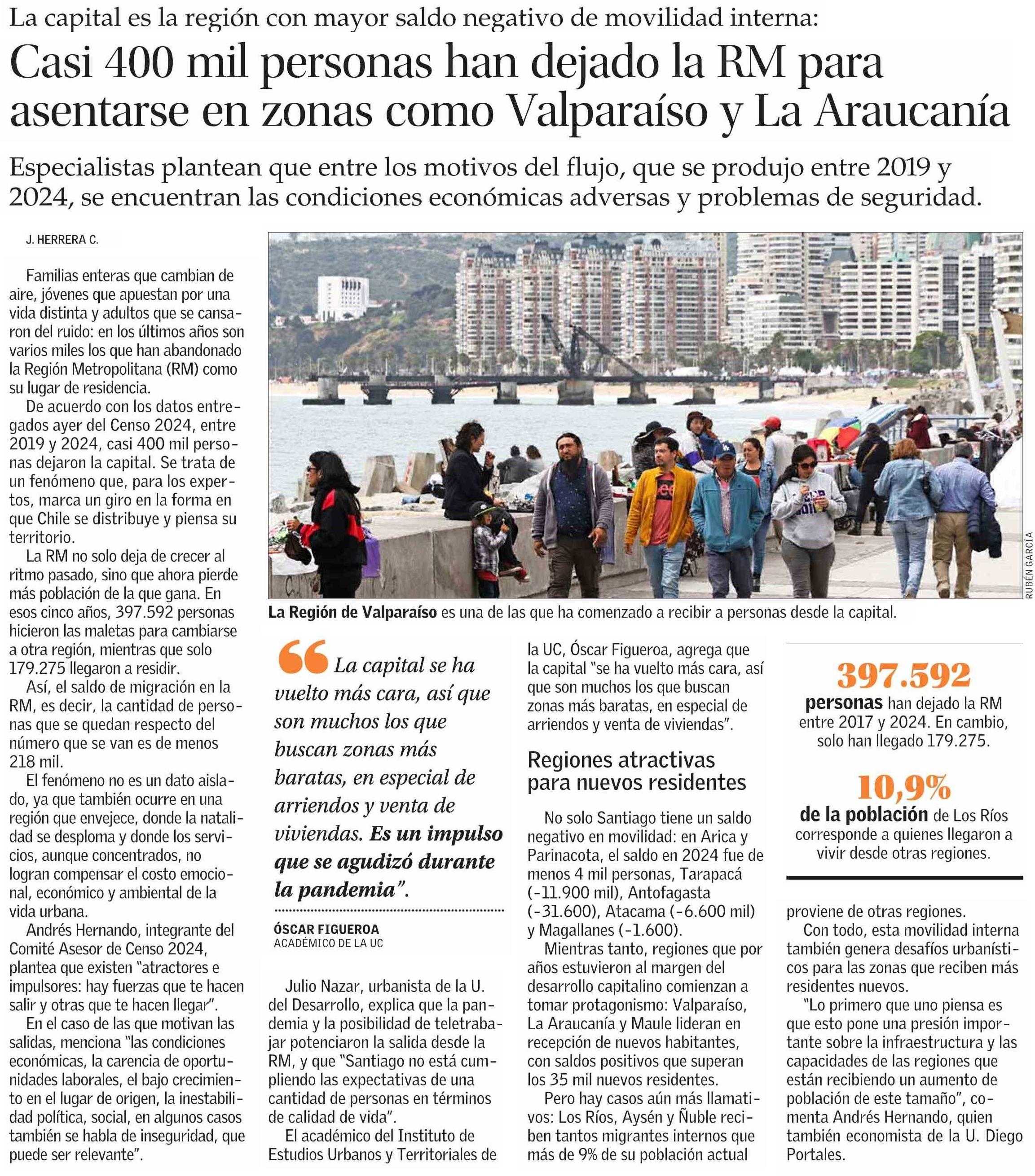 Casi 400 mil personas han dejado la RM para asentarse en zonas como Valparaíso y La Araucanía