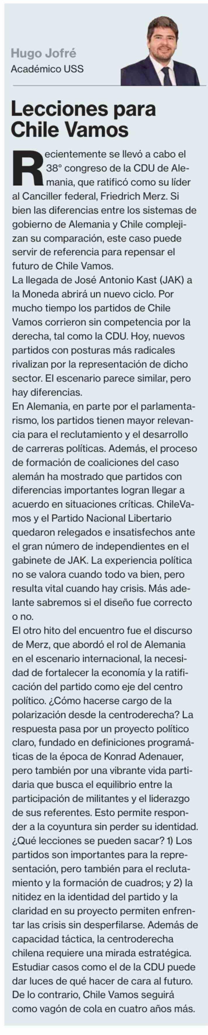 Columnas de Opinión: Lecciones para Chile Vamos