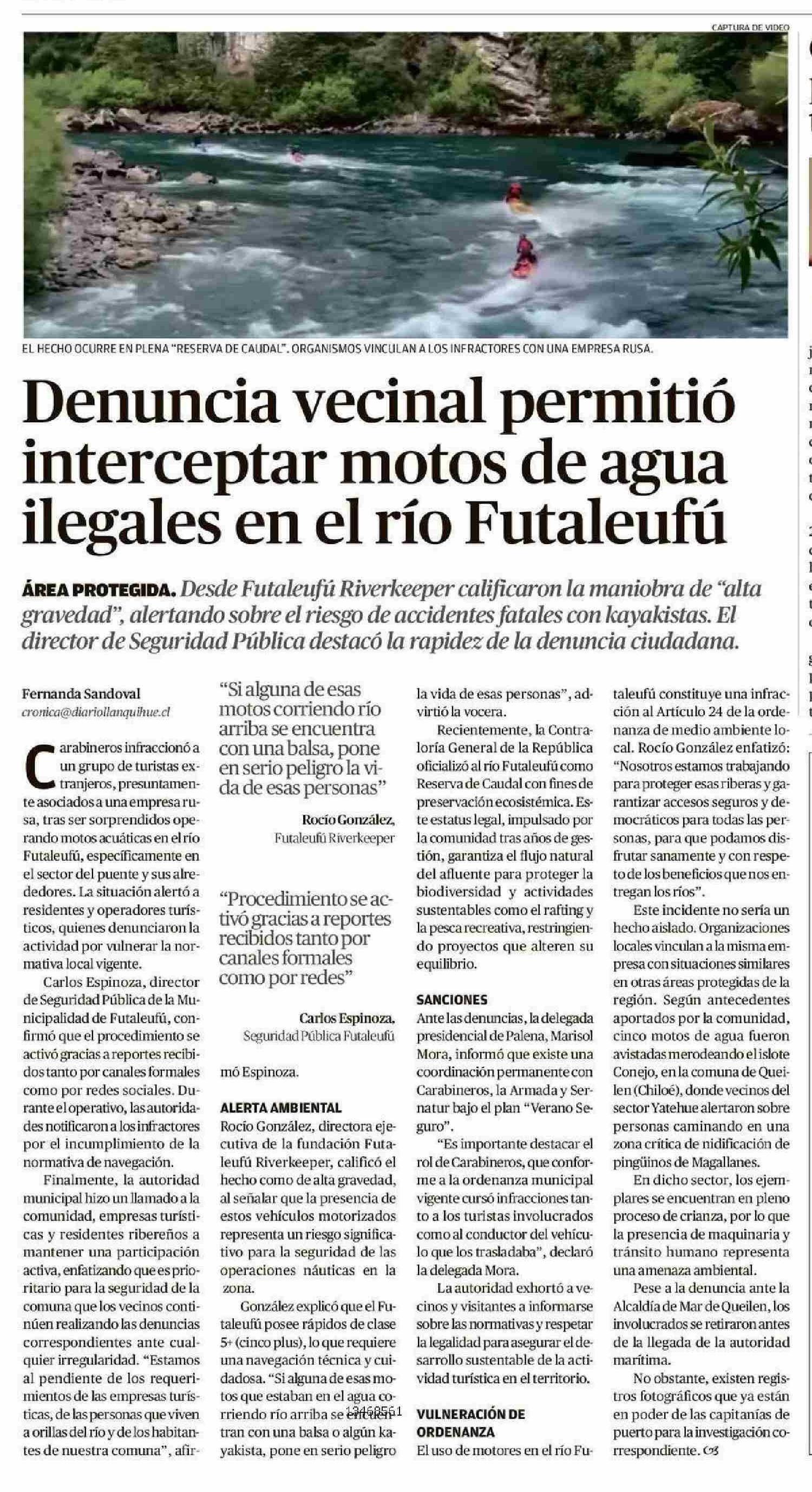 Denuncia vecinal permitió interceptar motos de agua ilegales en el río Futaleufú