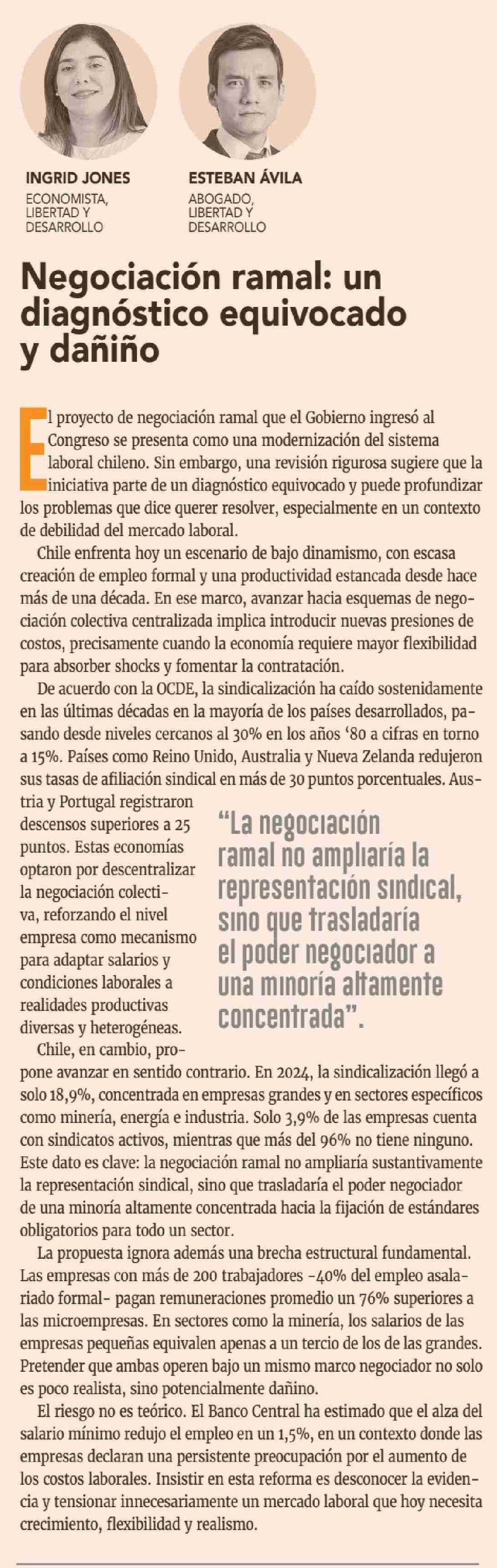 Columnas de Opinión: Negociación ramal: un diagnóstico equivocado y dañiño