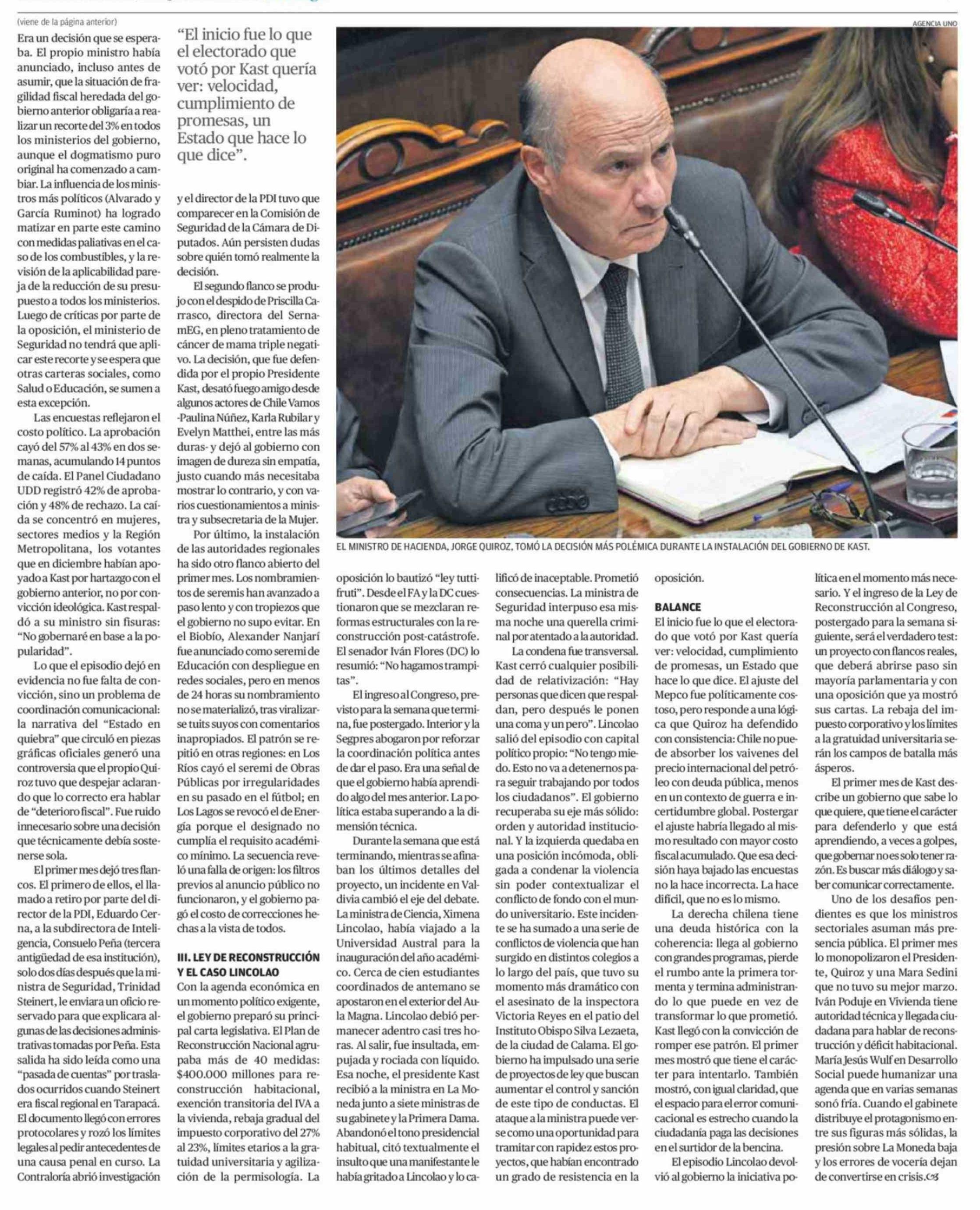 Primer mes de Kast: el inicio, el Mepco y el regreso de la política