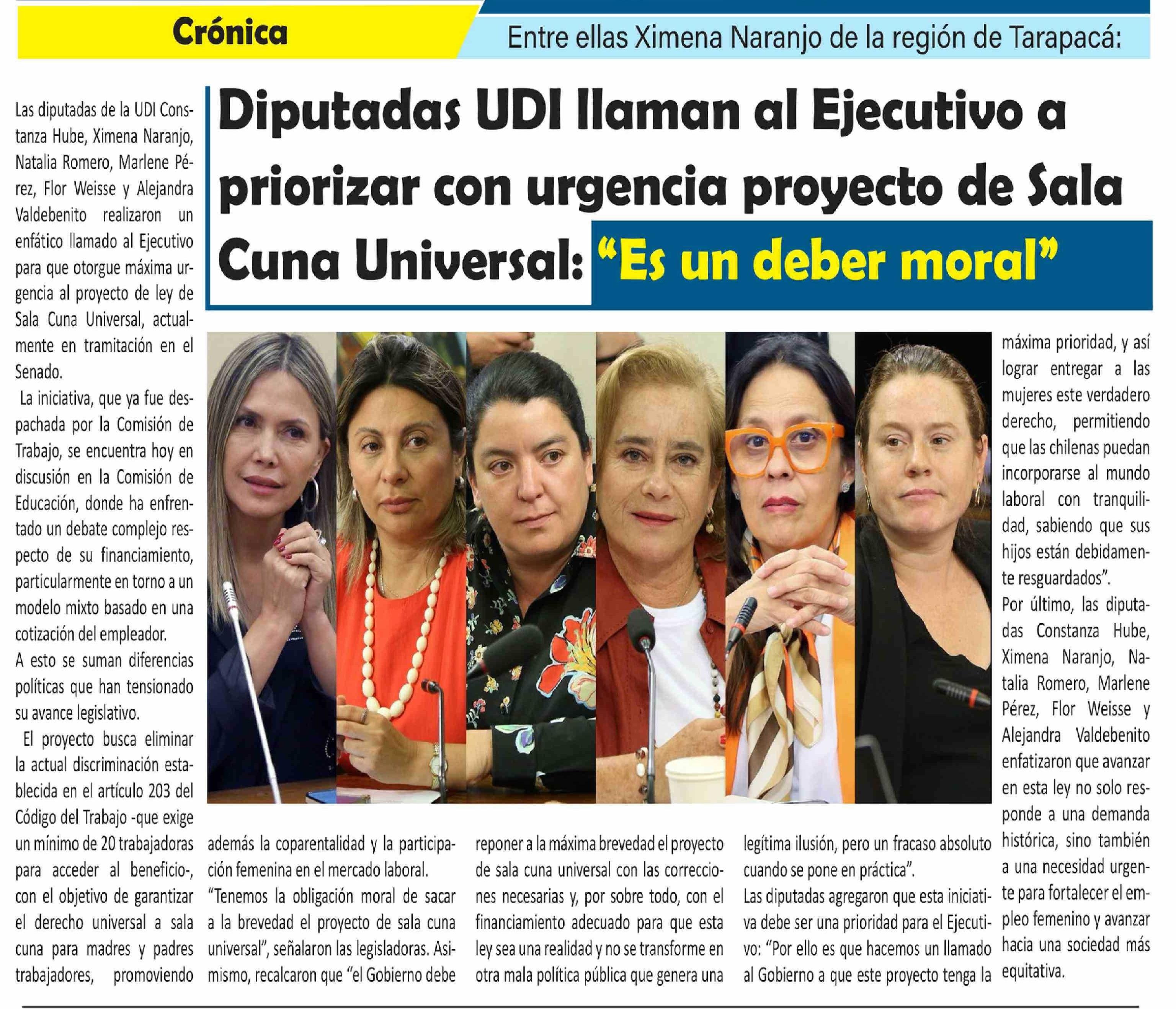 Diputadas UDI llaman al Ejecutivo a priorizar con urgencia proyecto de Sala Cuna Universal: "Es un deber moral"