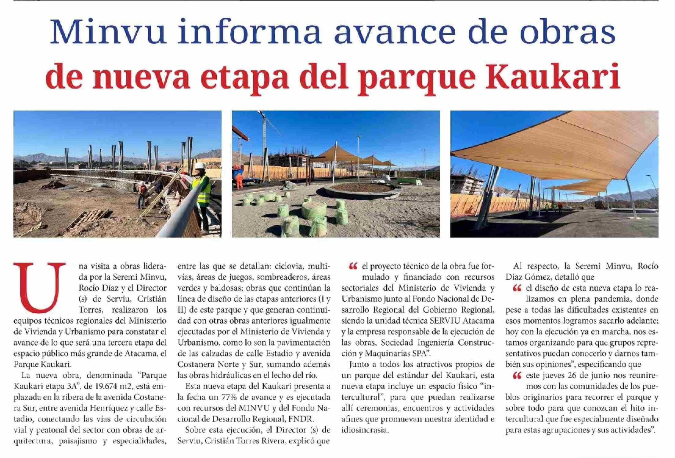 Minvu informa avance de obras de nueva etapa del parque Kaukari