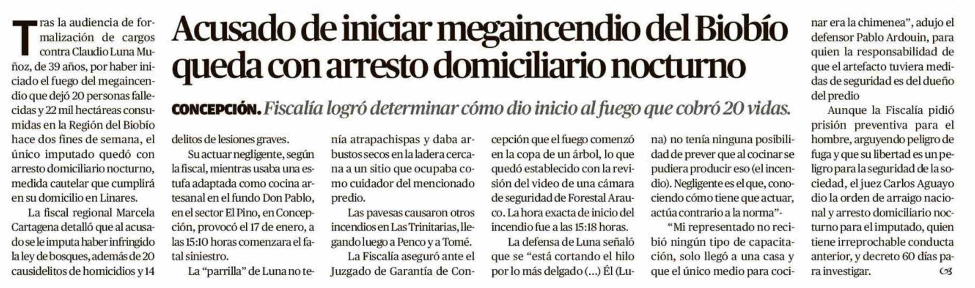 Acusado de iniciar megaincendio del Biobío queda con arresto domiciliario nocturno