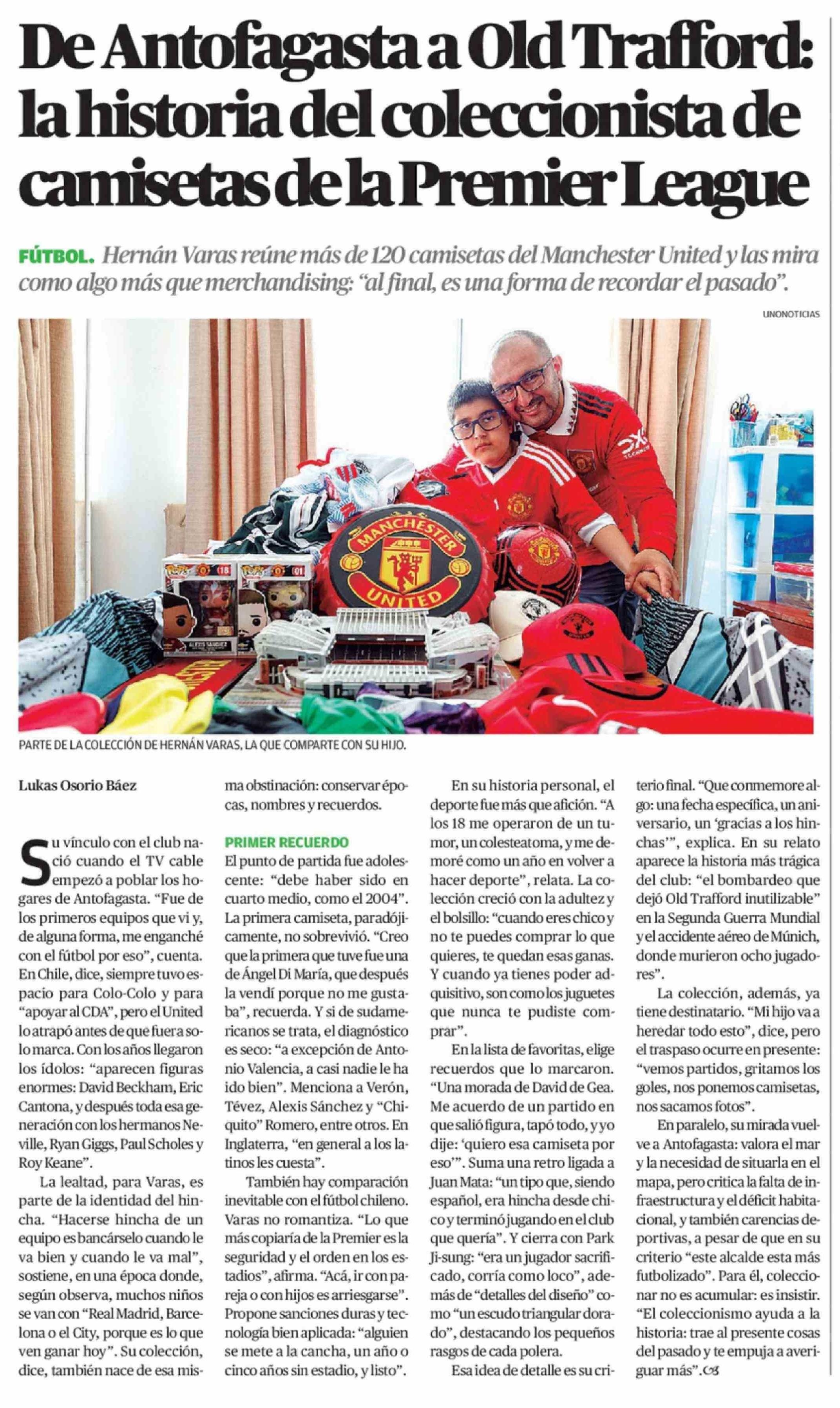 De Antofagasta a Old Trafford: la historia del coleccionista de camisetas de la Premier League