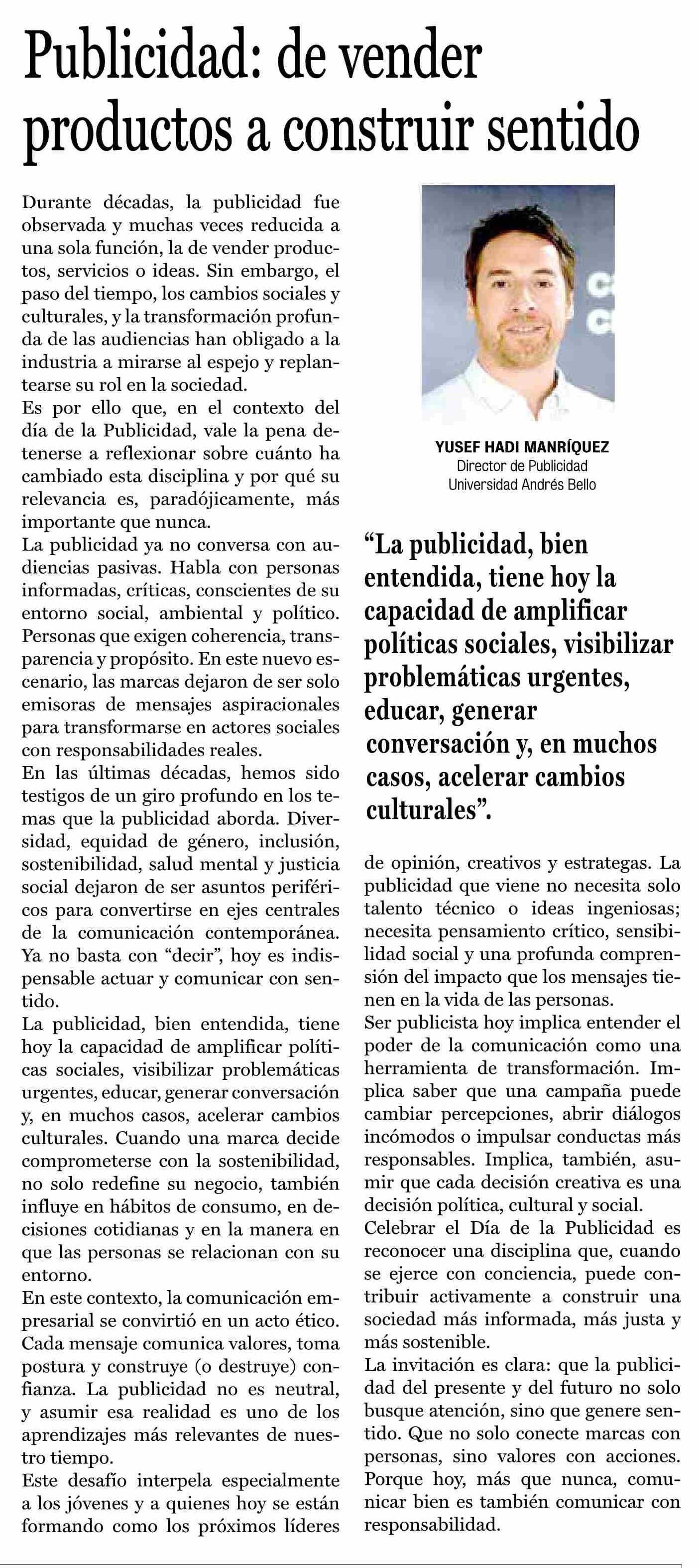 Columnas de Opinión: Publicidad: de vender productos a construir sentido