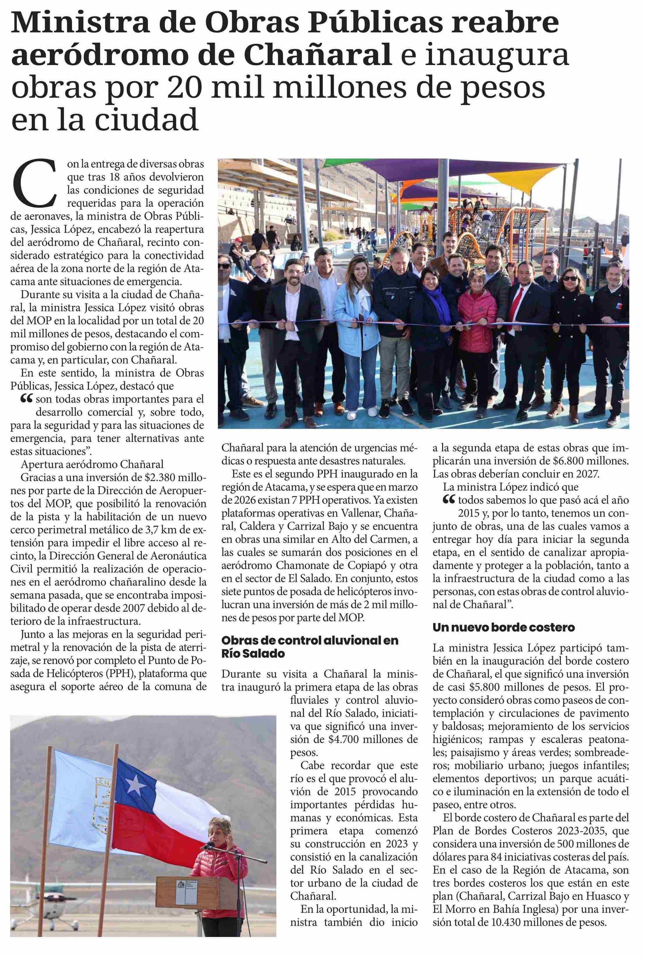 Ministra de Obras Públicas reabre aeródromo de Chañaral e inaugura obras por 20 mil millones de pesos