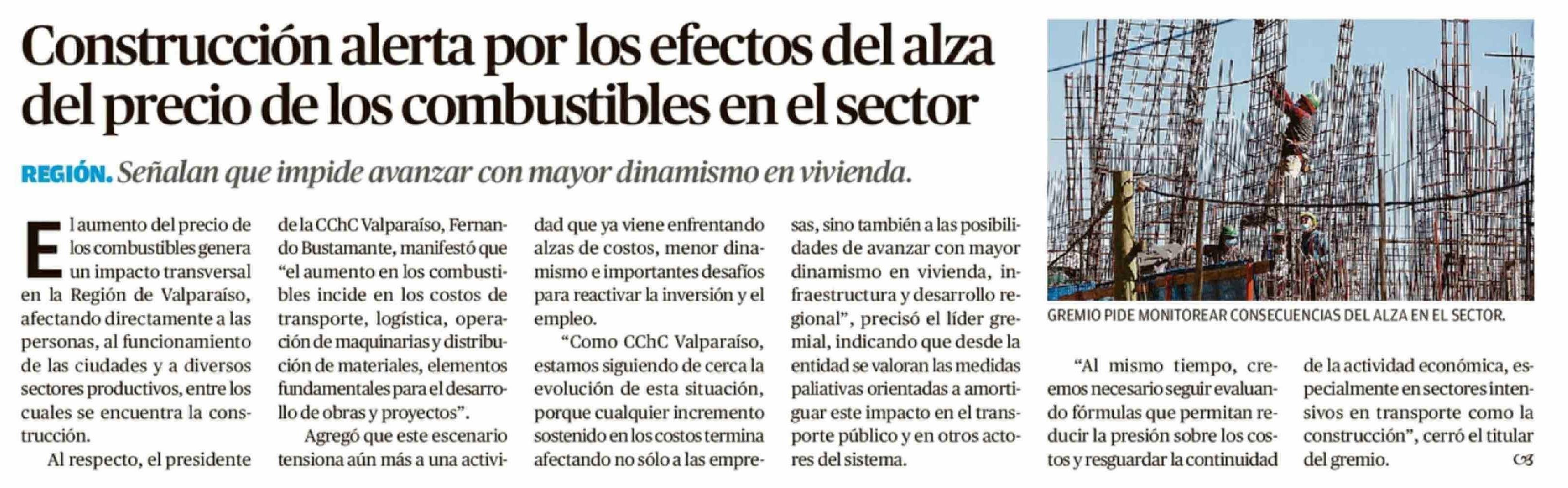 Construcción alerta por los efectos del alza del precio de los combustibles en el sector