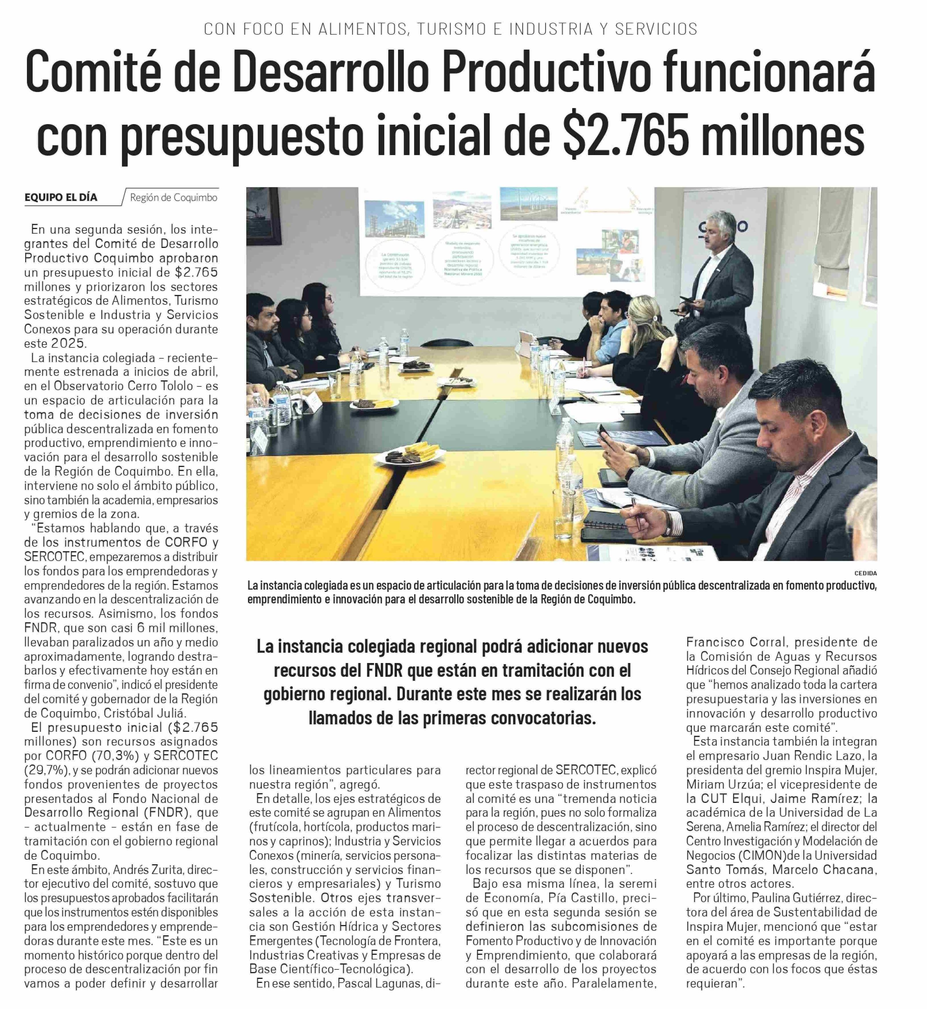 Comité de Desarrollo Productivo funcionará con presupuesto inicial de $2.765 millones