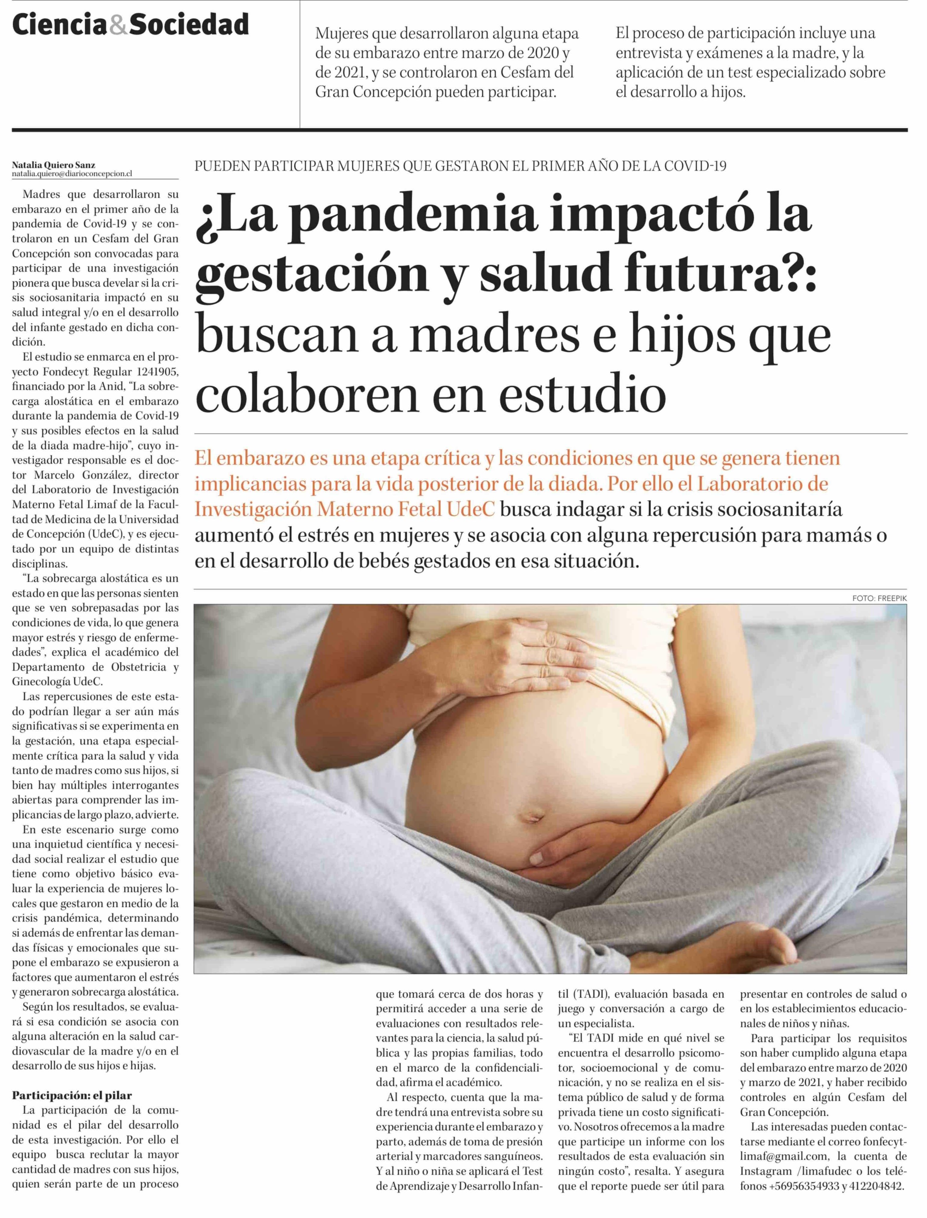 Título: ¿La pandemia impactó la gestación y salud futura ?: buscan a madres e hijos que colaboren en estudio