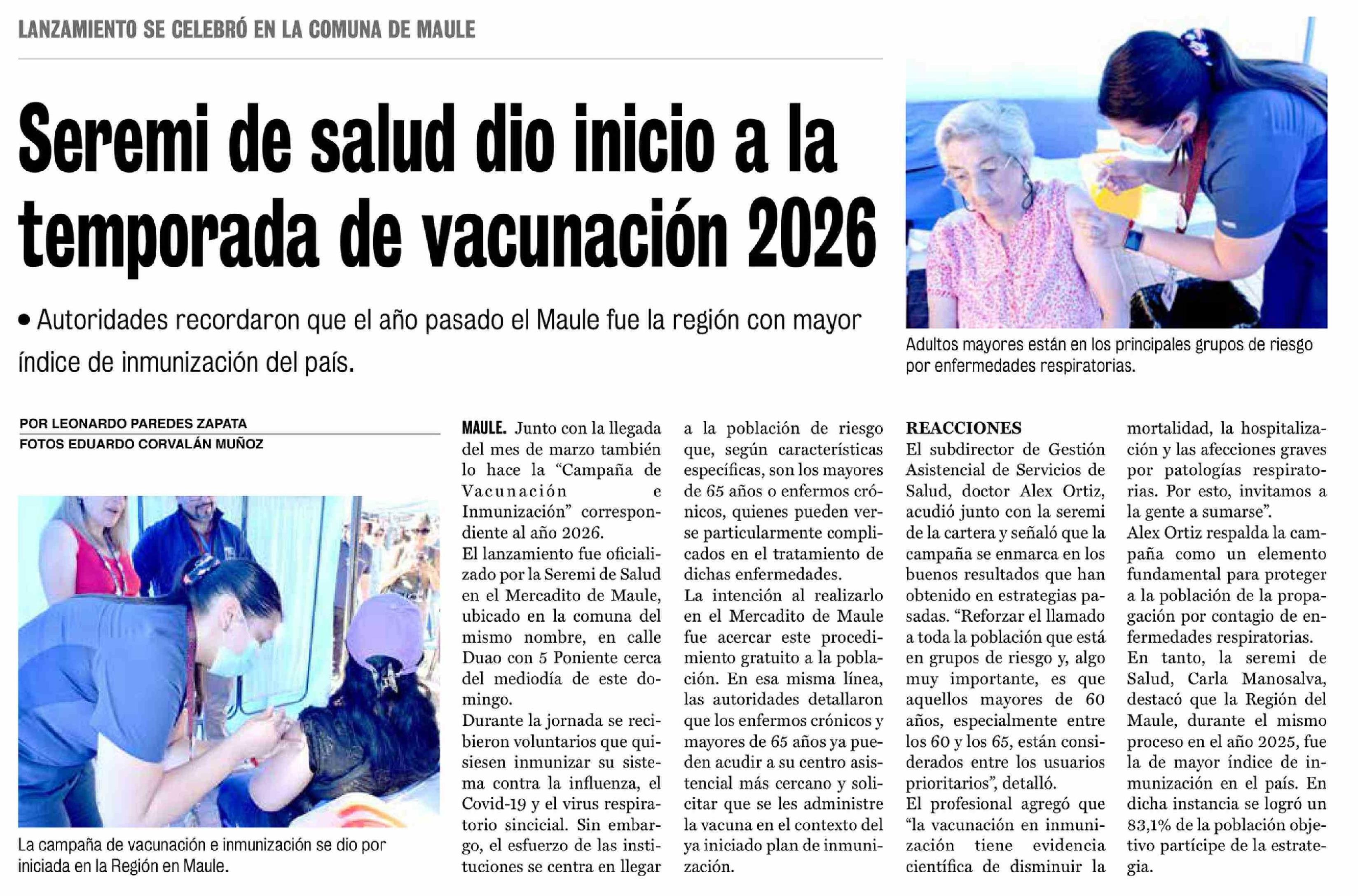 Seremi de salud dio inicio a la temporada de vacunación 2026