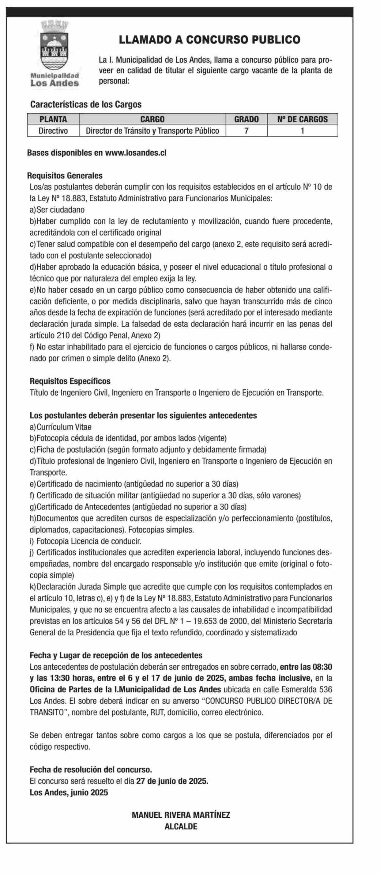 AVISO LICITACIONES: LLAMADO A CONCURSO PUBLICO
