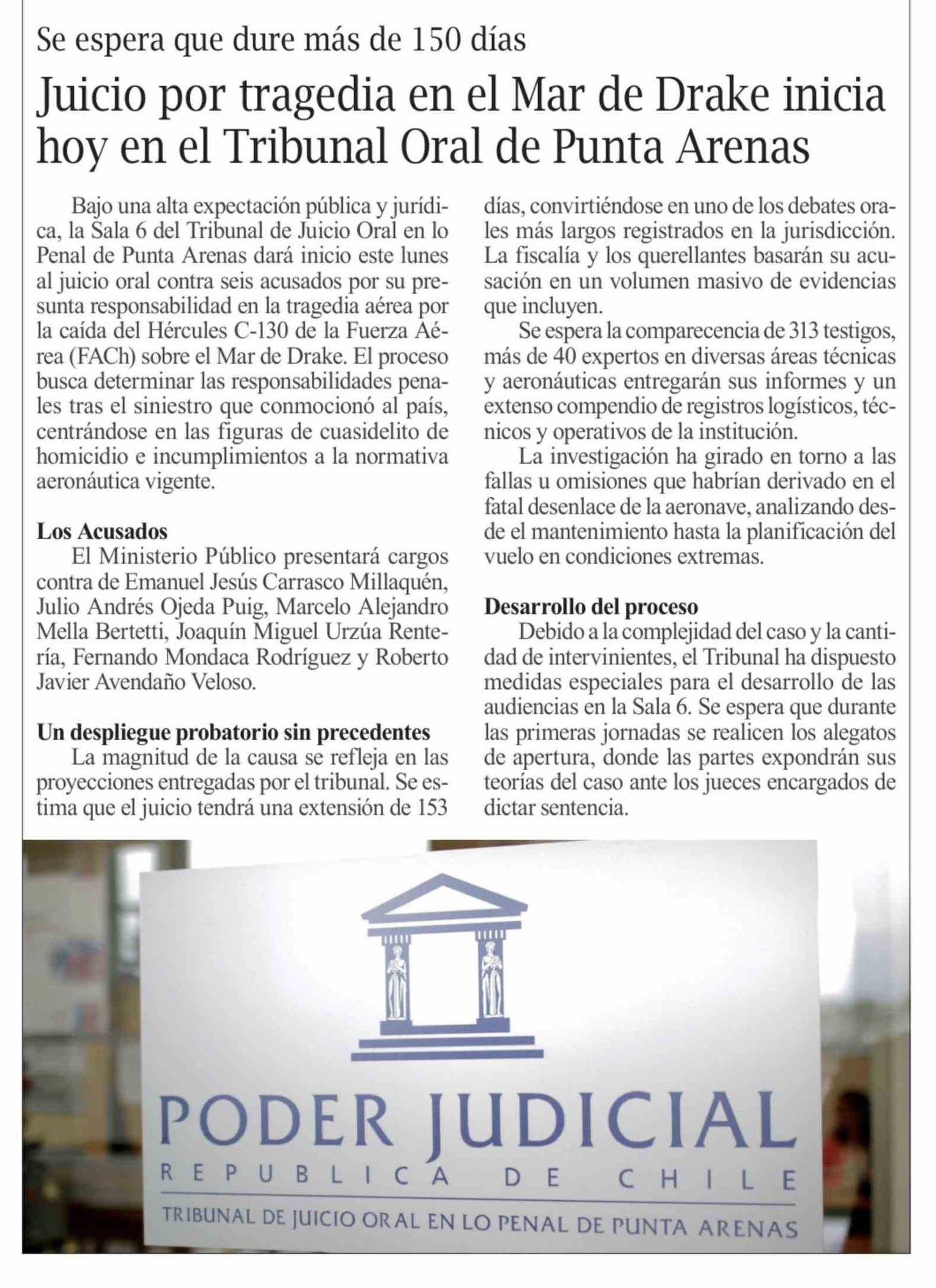 Título: Juicio por tragedia en el Mar de Drake inicia hoy en el Tribunal Oral de Punta Arenas