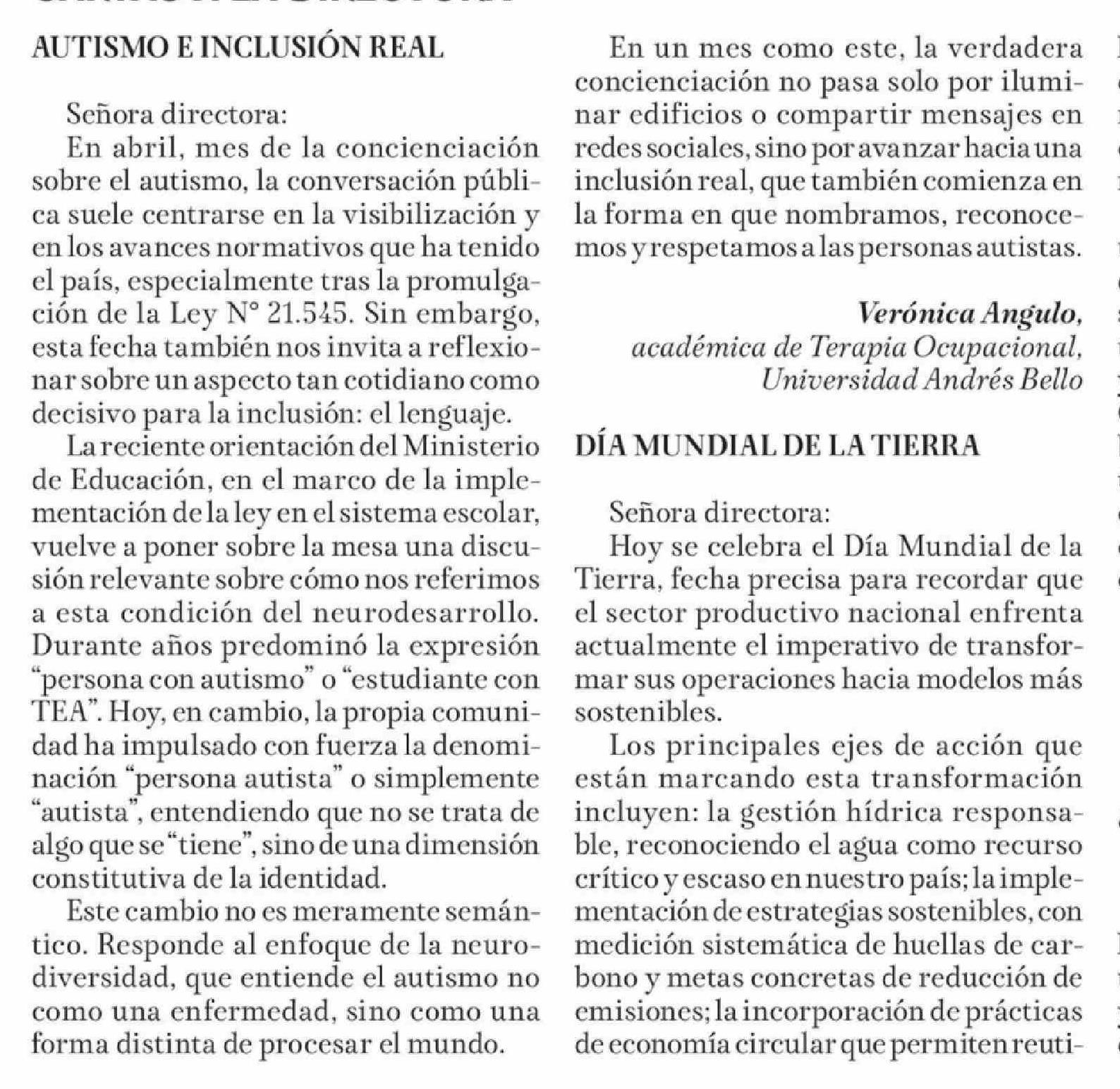 Cartas: AUTISMO E INCLUSIÓN REAL