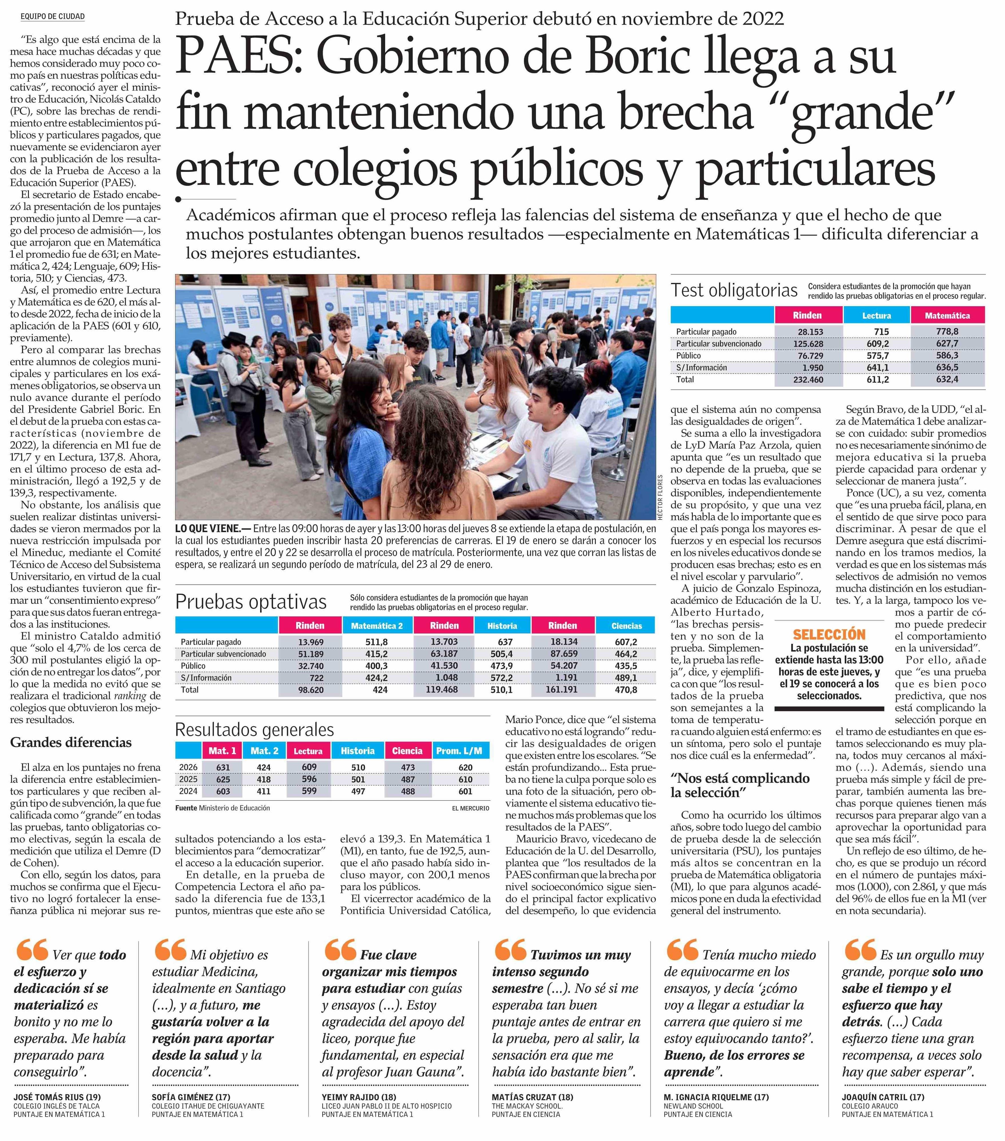 PAES: Gobierno de Boric llega a su fin manteniendo una brecha “grande” entre colegios públicos y particulares