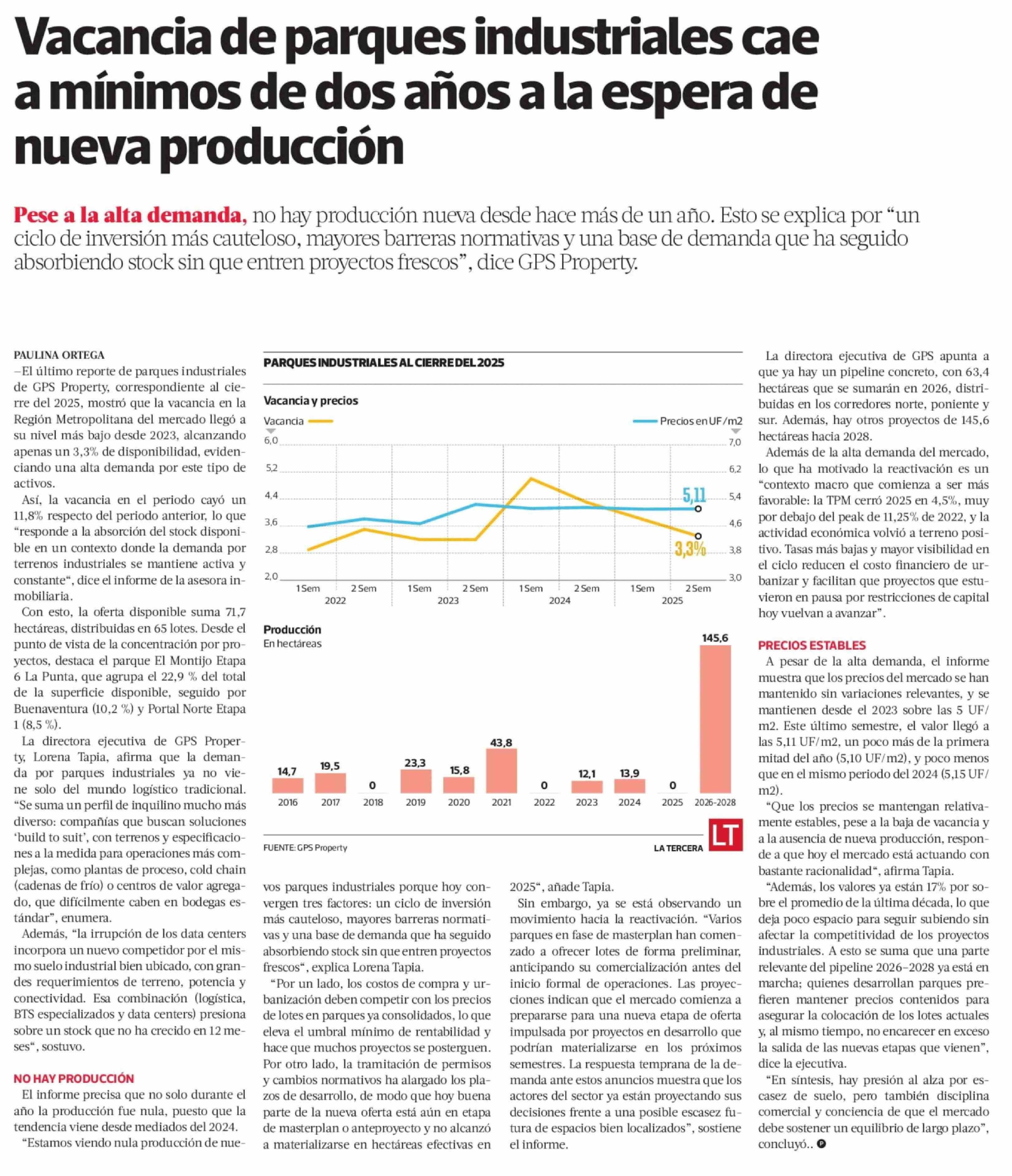 Vacancia de parques industriales cae a mínimos de dos años a la espera de nueva producción